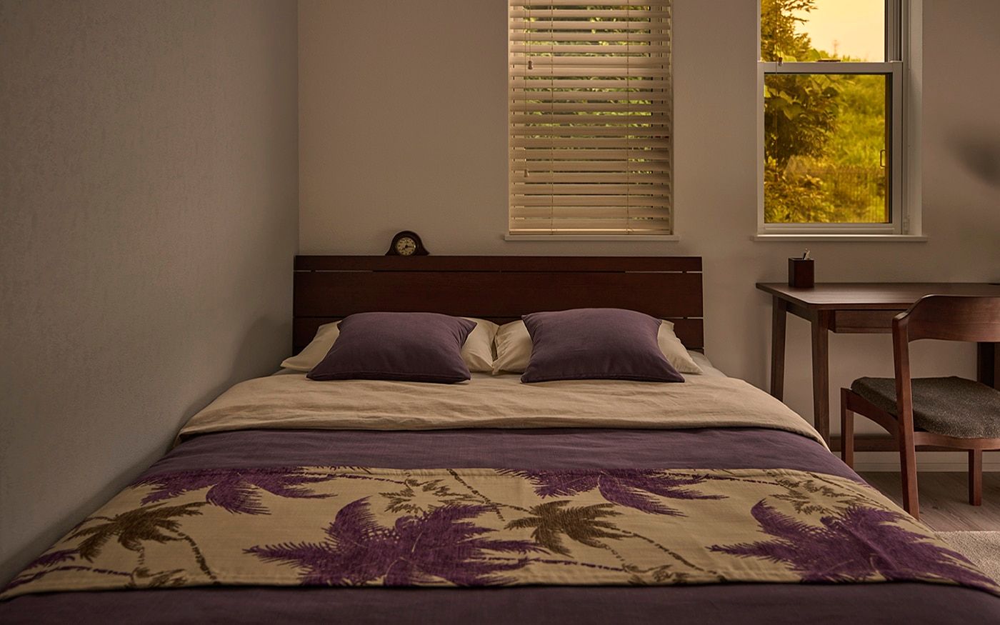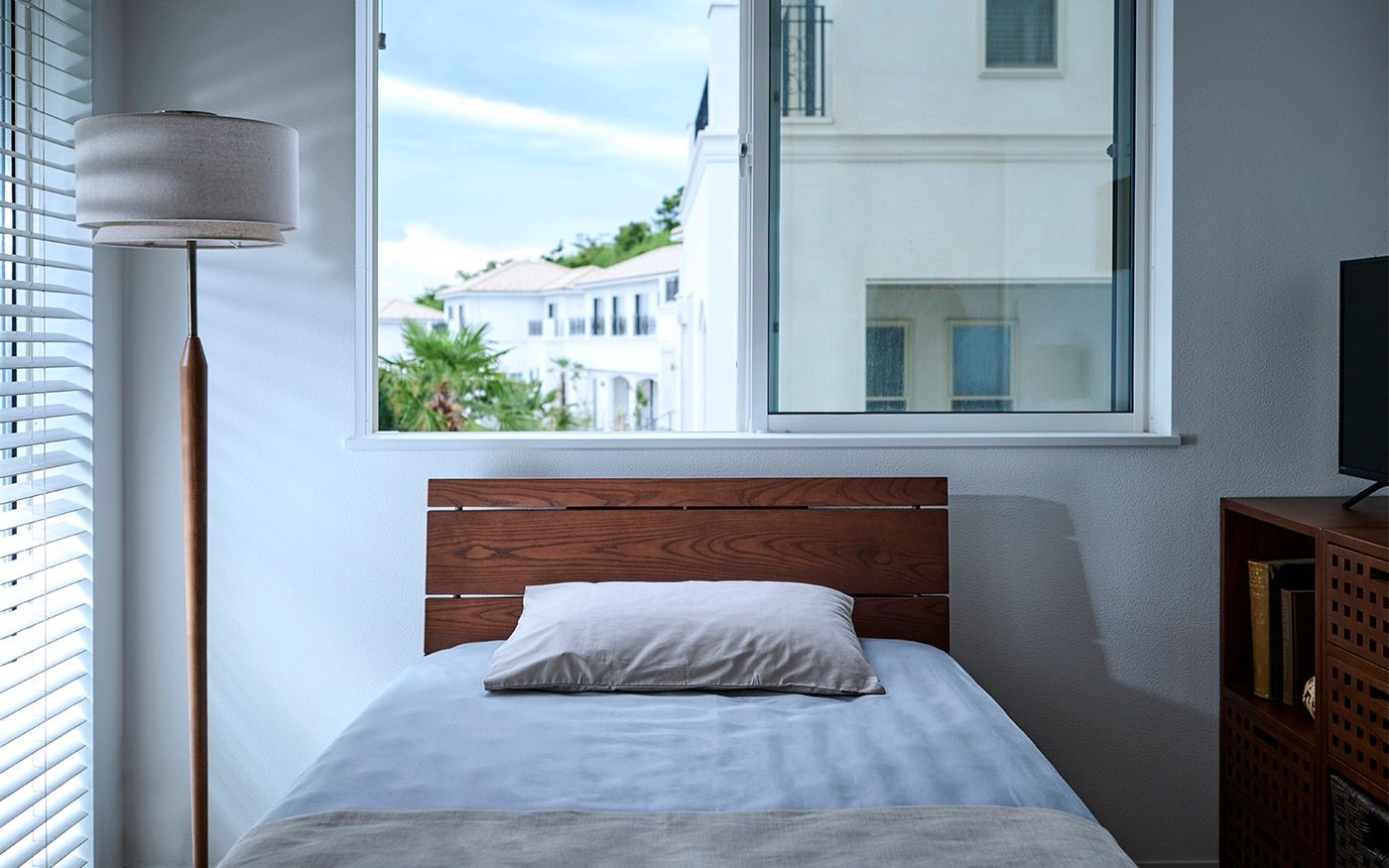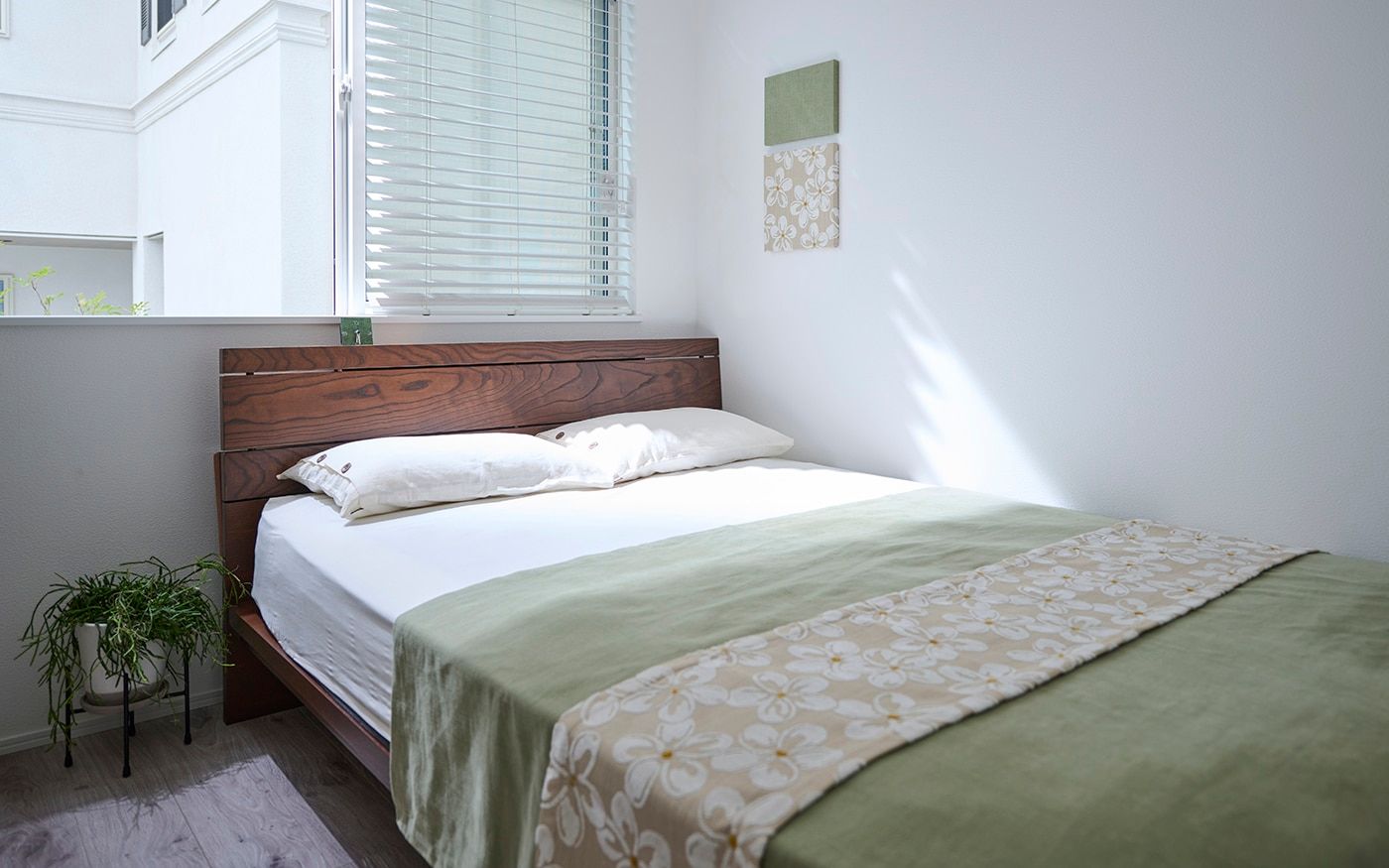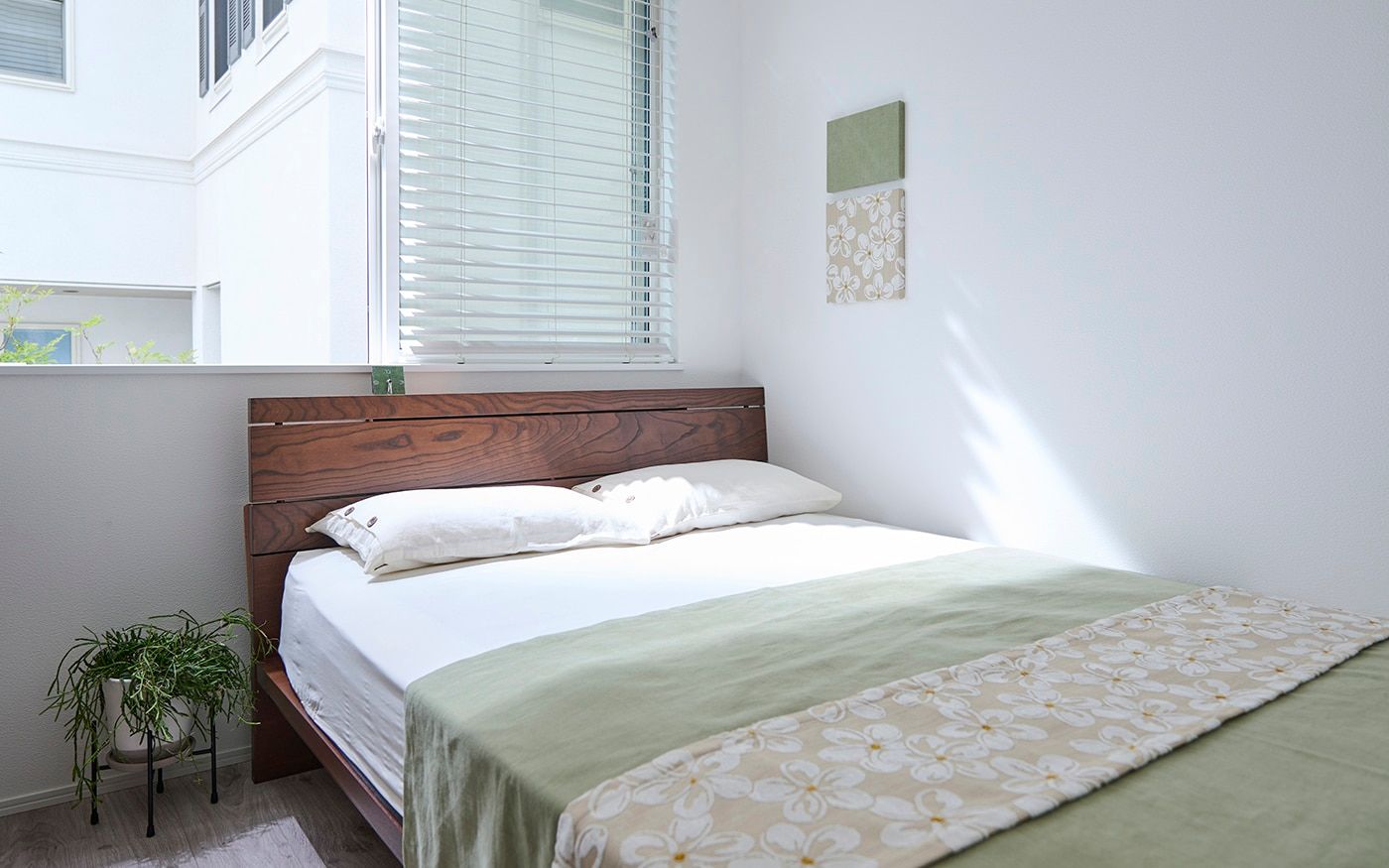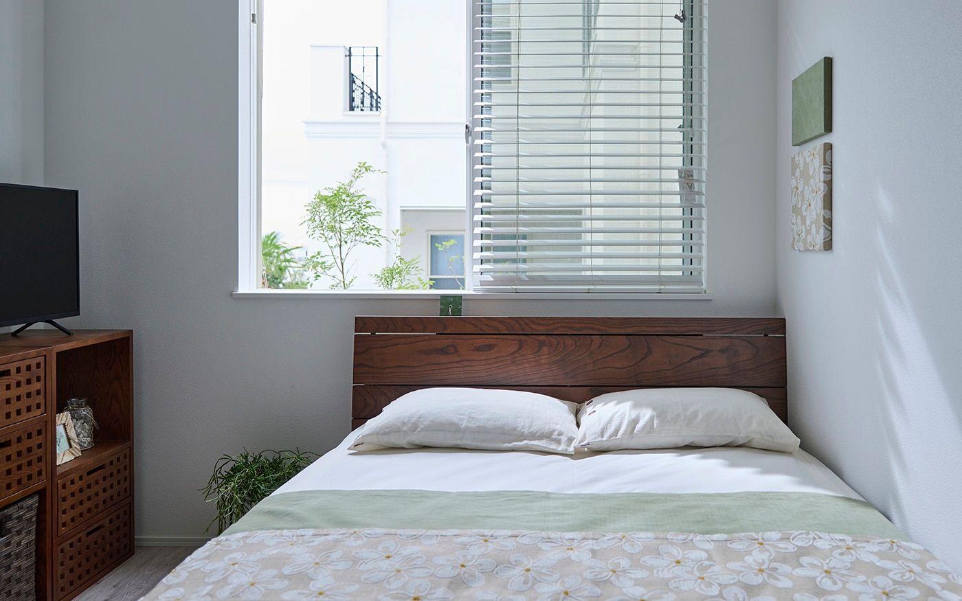 やわらかな朝日が照らす寝室は、淡めのカラーでコーディネート。爽やかながらも落ち着いた雰囲気の寝室は、快適な睡眠と目覚めを与えてくれることでしょう。ベージュやアイボリーを中心に彩れば、穏やかな目覚めが期待できるカラーコーディネートです。