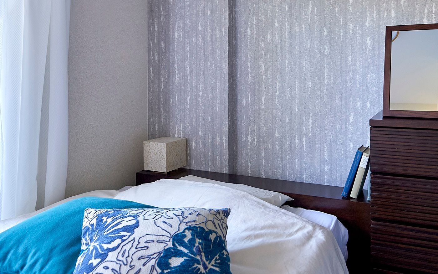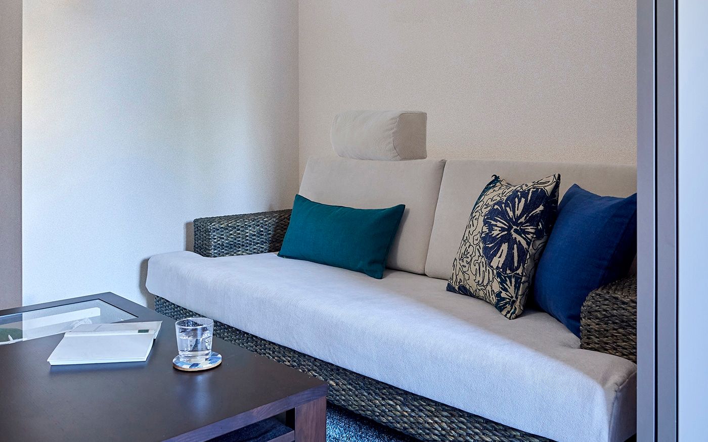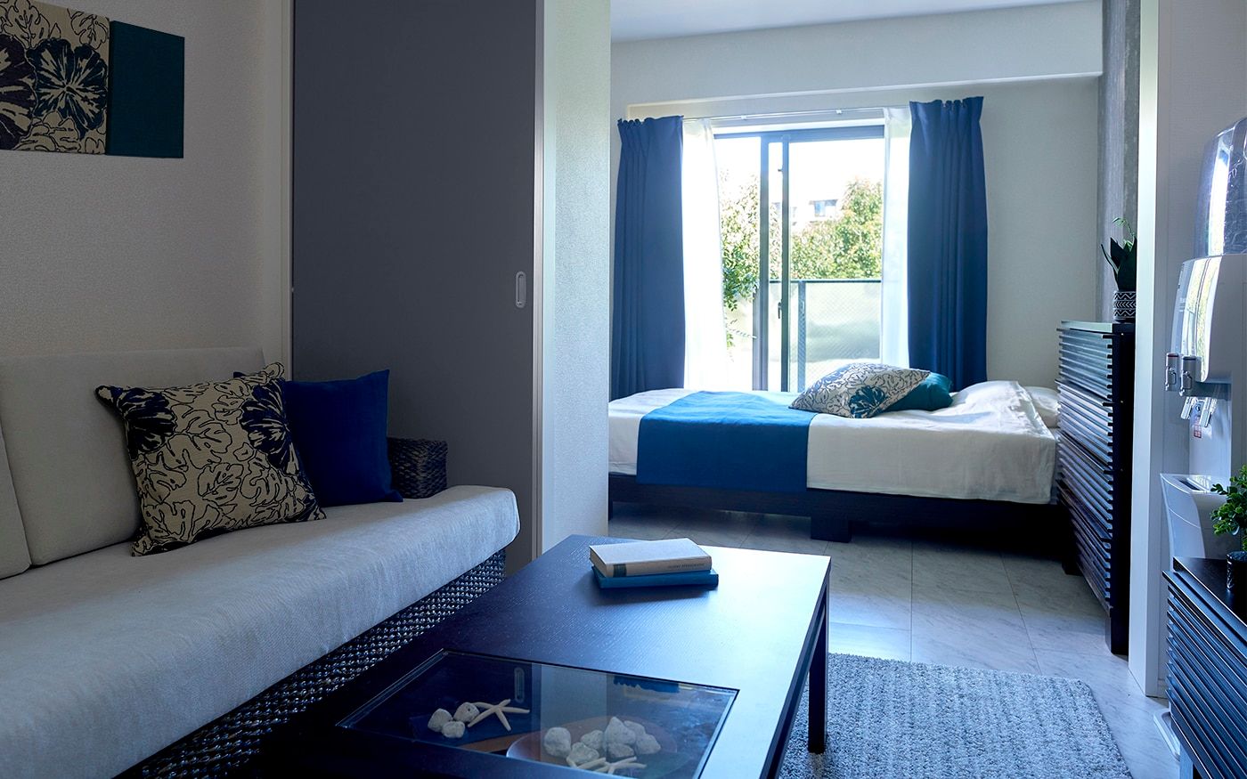清々しく、安らかな空気感はアイランドリゾートならではの魅力です。時のうつろいによって映し出される自然と神秘の情景を、ご自宅でも再現してみましょう。澄んだ緑がかったブルーのインテリアや、ハイビスカス柄のファブリックが非日常的なムードを演出します。