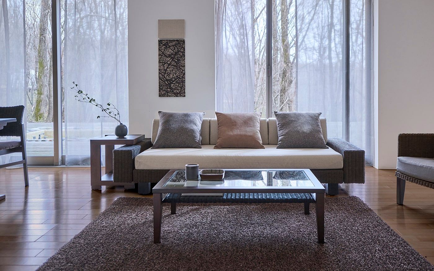 ロングセラーを続けるa.flatのソファ。素材選びからじっくりと時間をかけ、手作業で丁寧につくる職人のモノづくりへの想いが込められています。