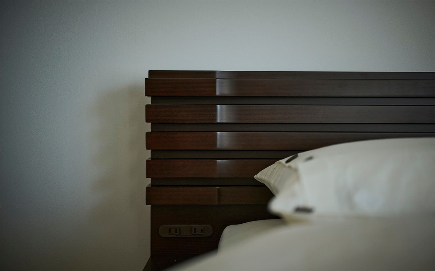 ルーバーデザインが魅力的なローベッド中心の寝室。ベッドスプレッドやラグ、アートパネルで様々なグレー・素材感をミックスして、モダンな中にも柔らかさを感じるグレーのカラーコーデが叶います。大人っぽい上質な寝室を目指したい方におすすめです。