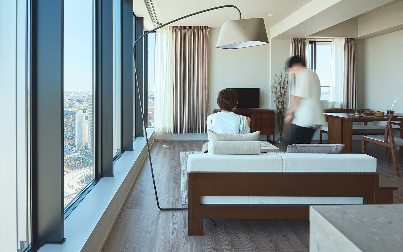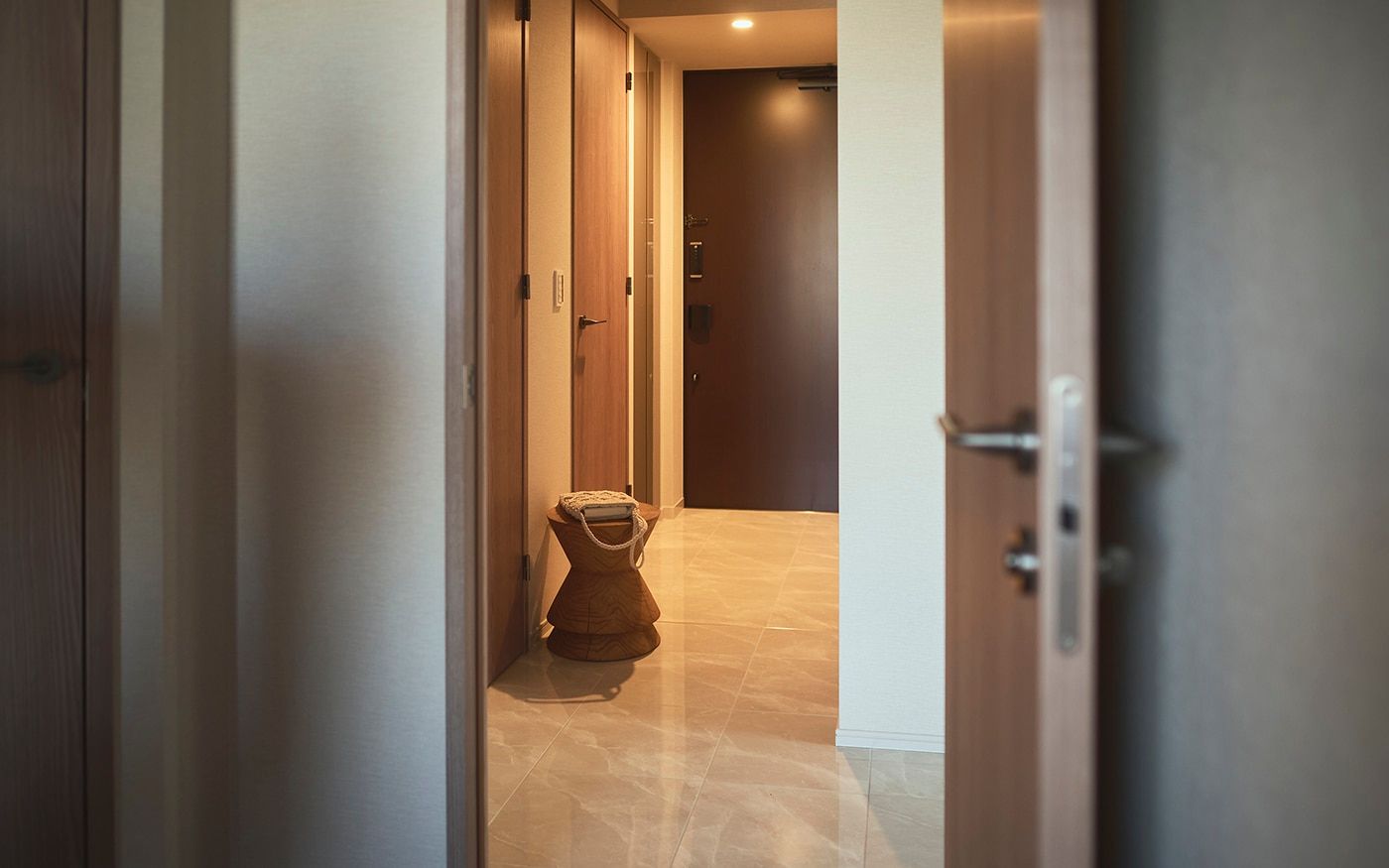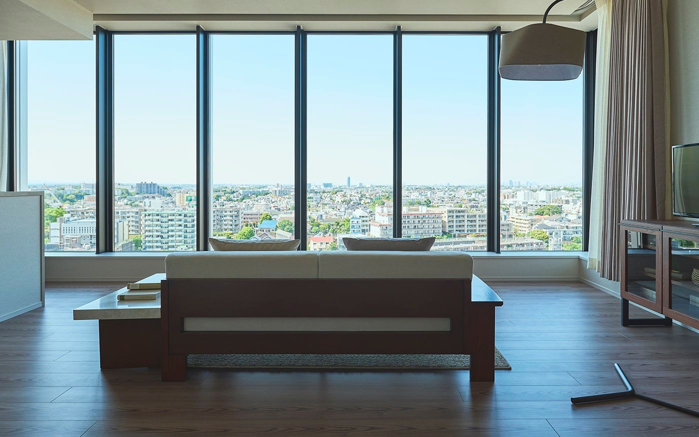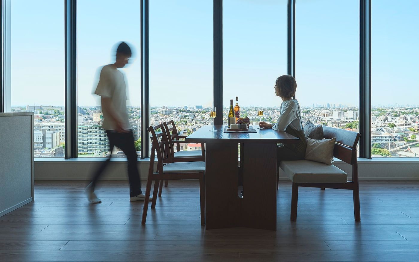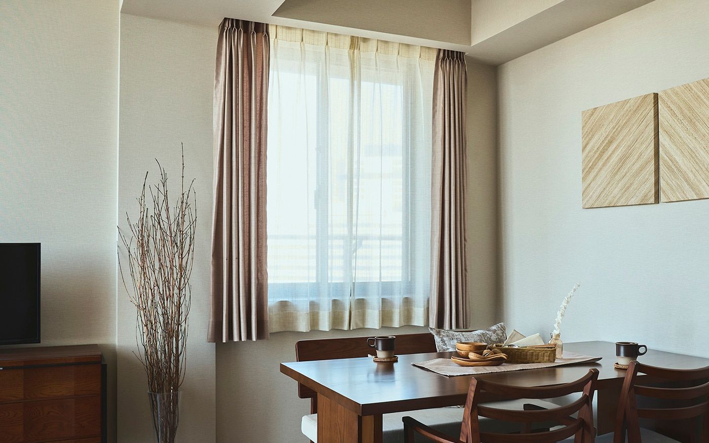 空気感を生み出す自然素材の家具に合わせて、柔らかなアースカラーのコーディネートをすることで、より一層心地良い部屋に仕上がります。内装と横浜の街並みが調和するファブリックコーデを取り入れました。