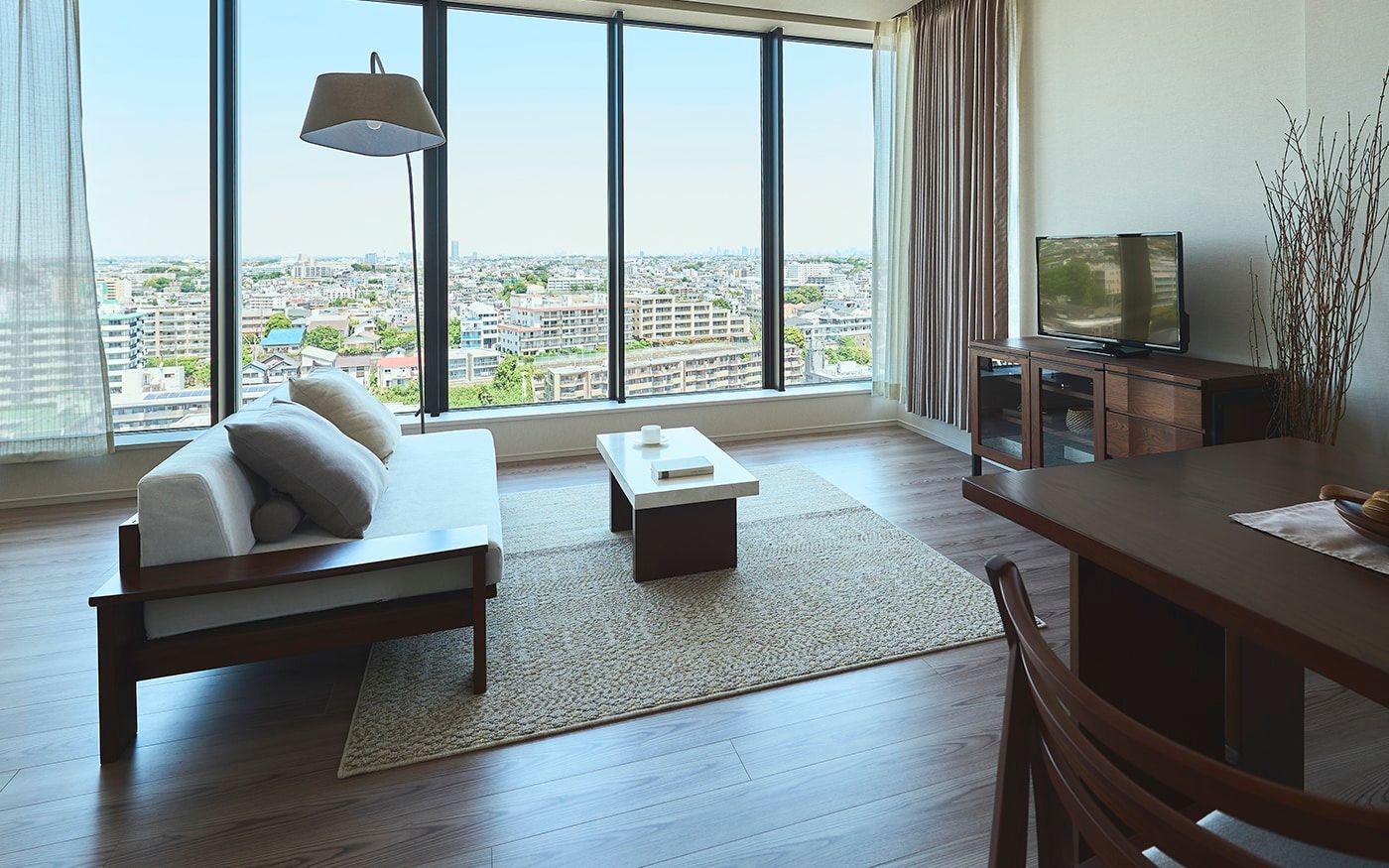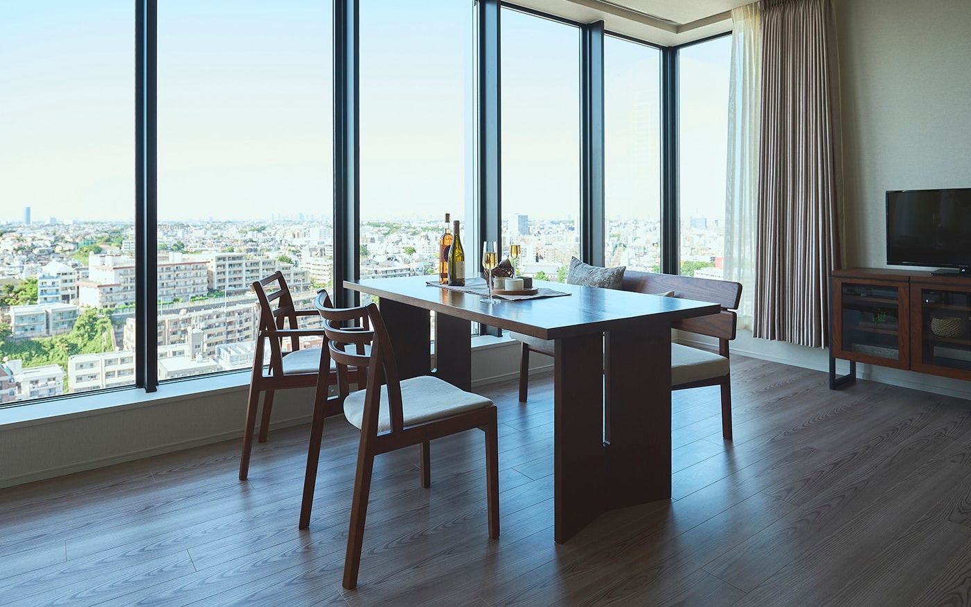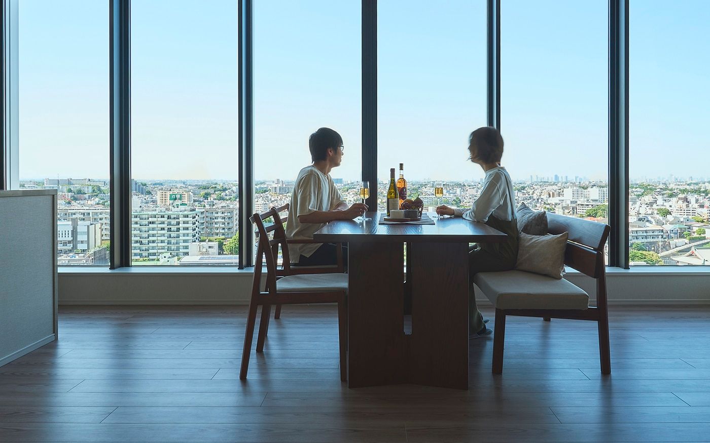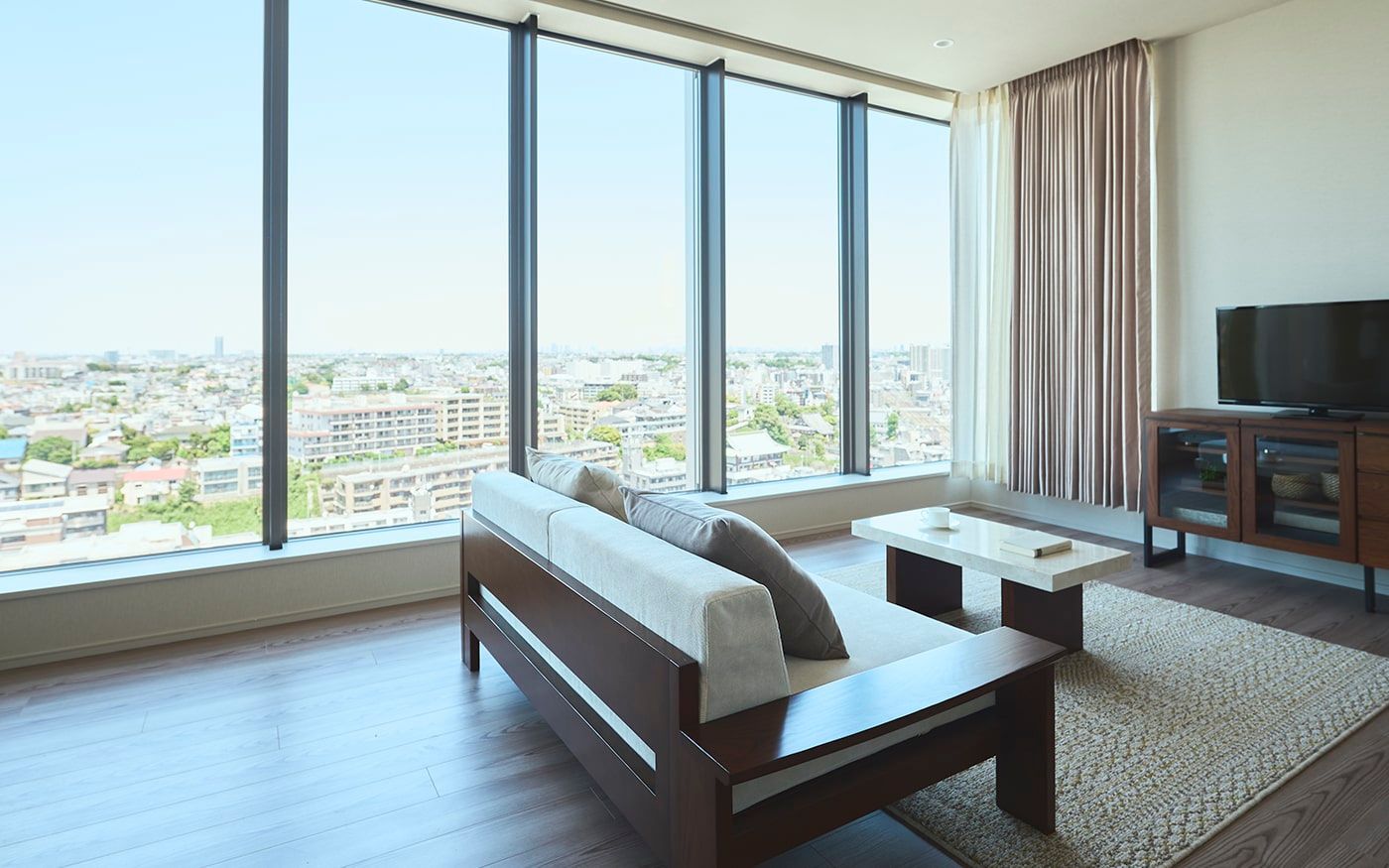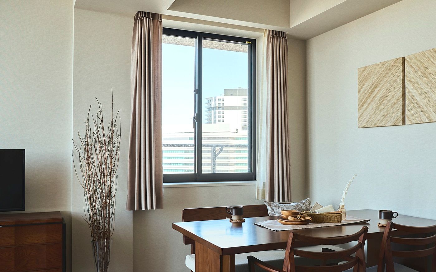 空気感を生み出す自然素材の家具に合わせて、柔らかなアースカラーのコーディネートをすることで、より一層心地良い部屋に仕上がります。内装と横浜の街並みが調和するファブリックコーデを取り入れました。