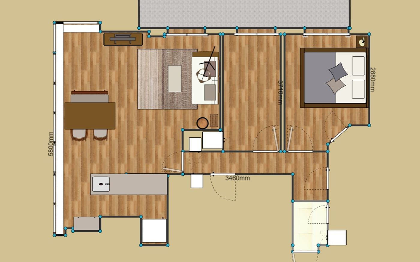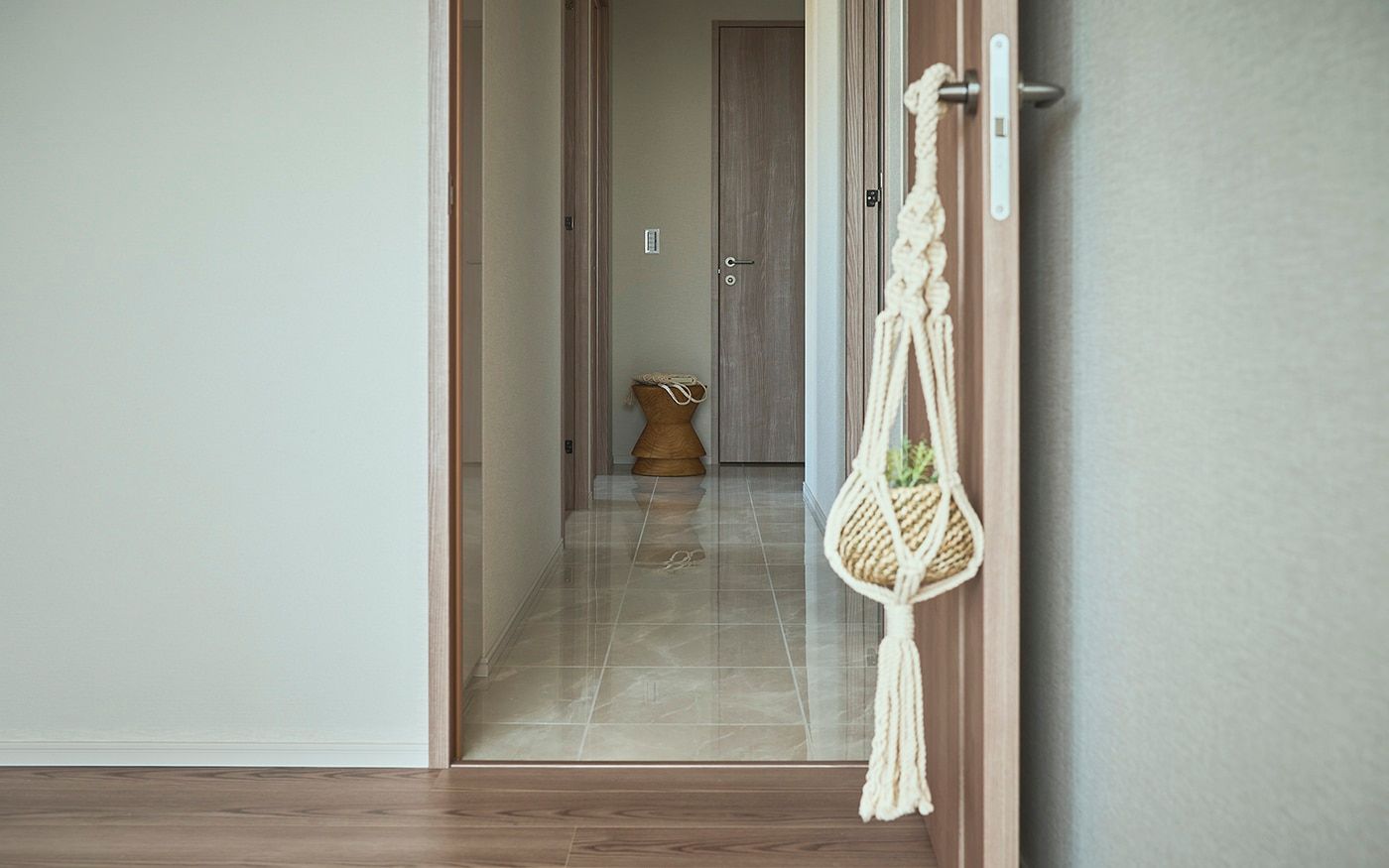 ナチュラルとはまた違ったアッシュがかった床材や扉、グレーのキッチンや大理石の天板からは自然素材のもつ温かみが感じられます。アースカラーの内装に溶け込むような素材を意識した、家具やインテリアコーディネートがポイントです。