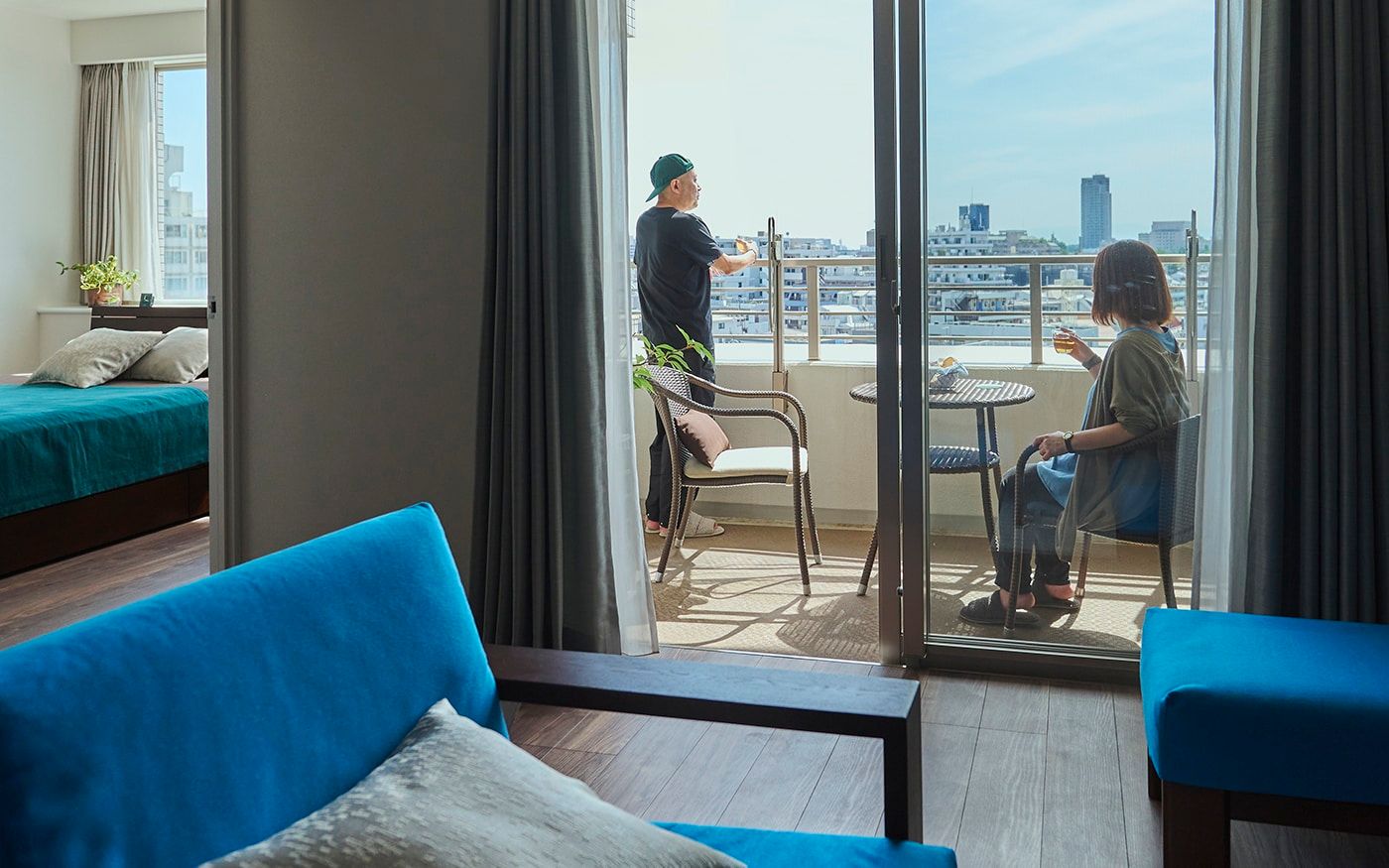 お客様が快適な空間を実現されたポイントの一つが、インテリアとカラーコーディネートへのこだわりです。ラグやカーテンは柔らかな色を選び、リラックスできる雰囲気を演出。また、アクセントとして景色とマッチするベッドカバーやクッションを加えることで、お部屋に明るさと個性を与えています。