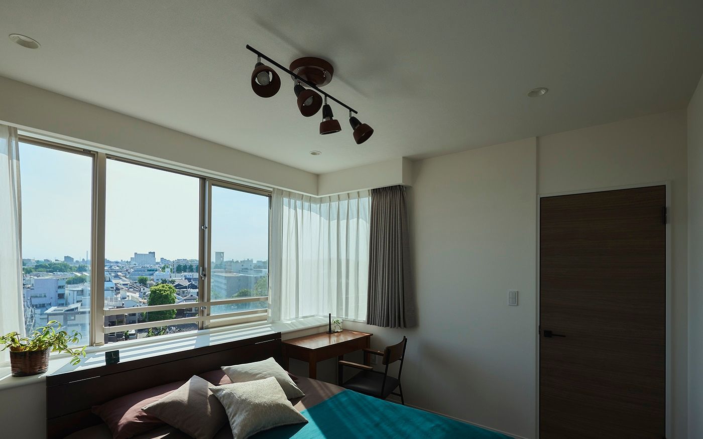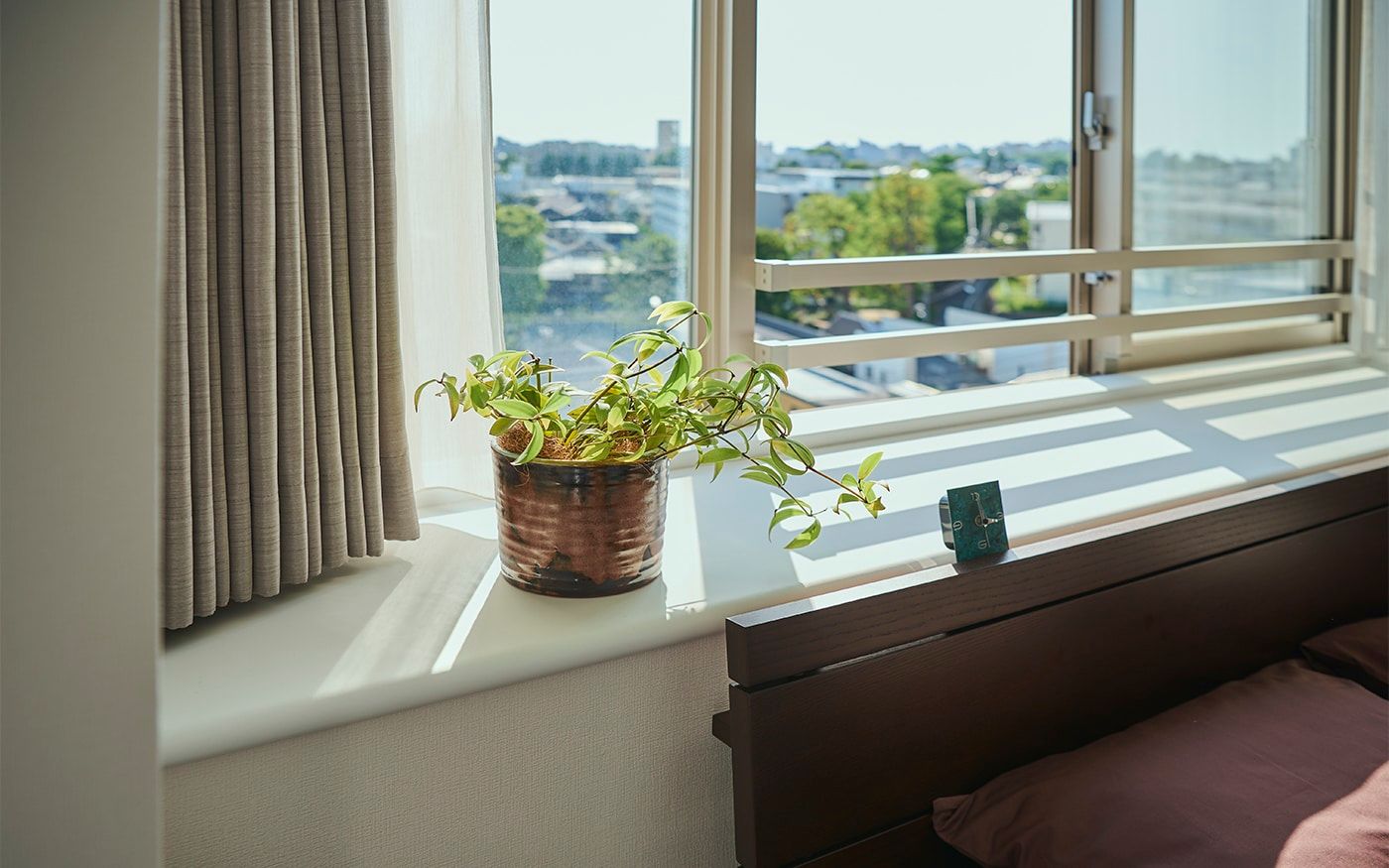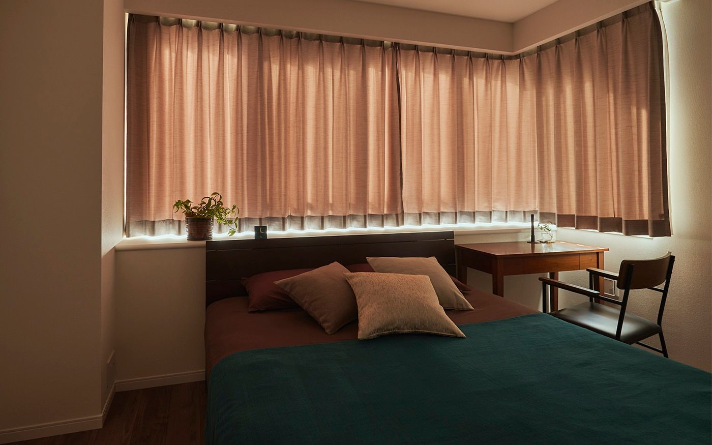 お客様が快適な空間を実現されたポイントの一つが、インテリアとカラーコーディネートへのこだわりです。ラグやカーテンは柔らかな色を選び、リラックスできる雰囲気を演出。また、アクセントとして景色とマッチするベッドカバーやクッションを加えることで、お部屋に明るさと個性を与えています。