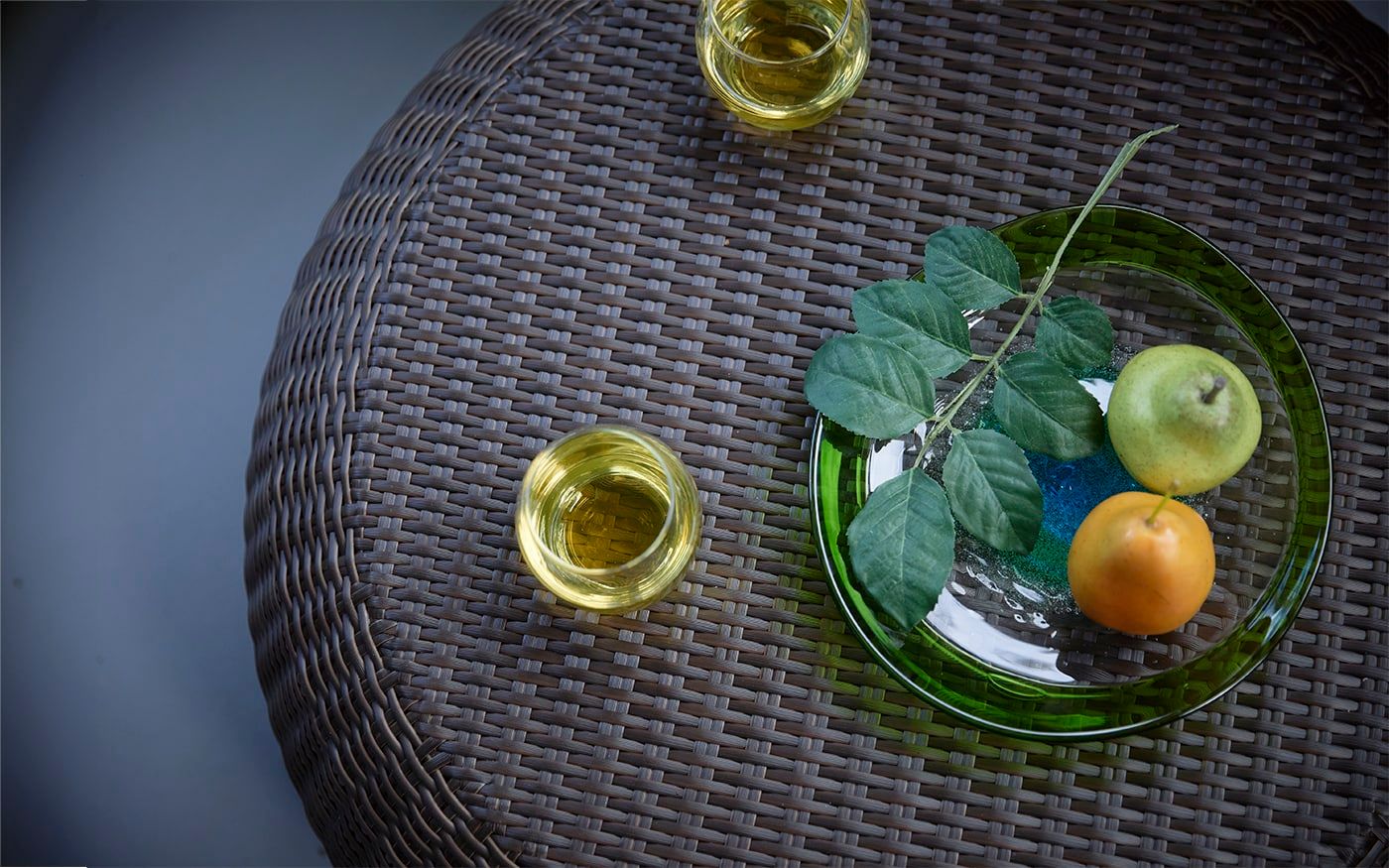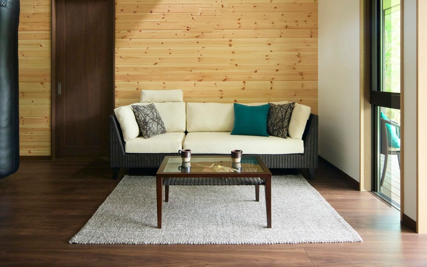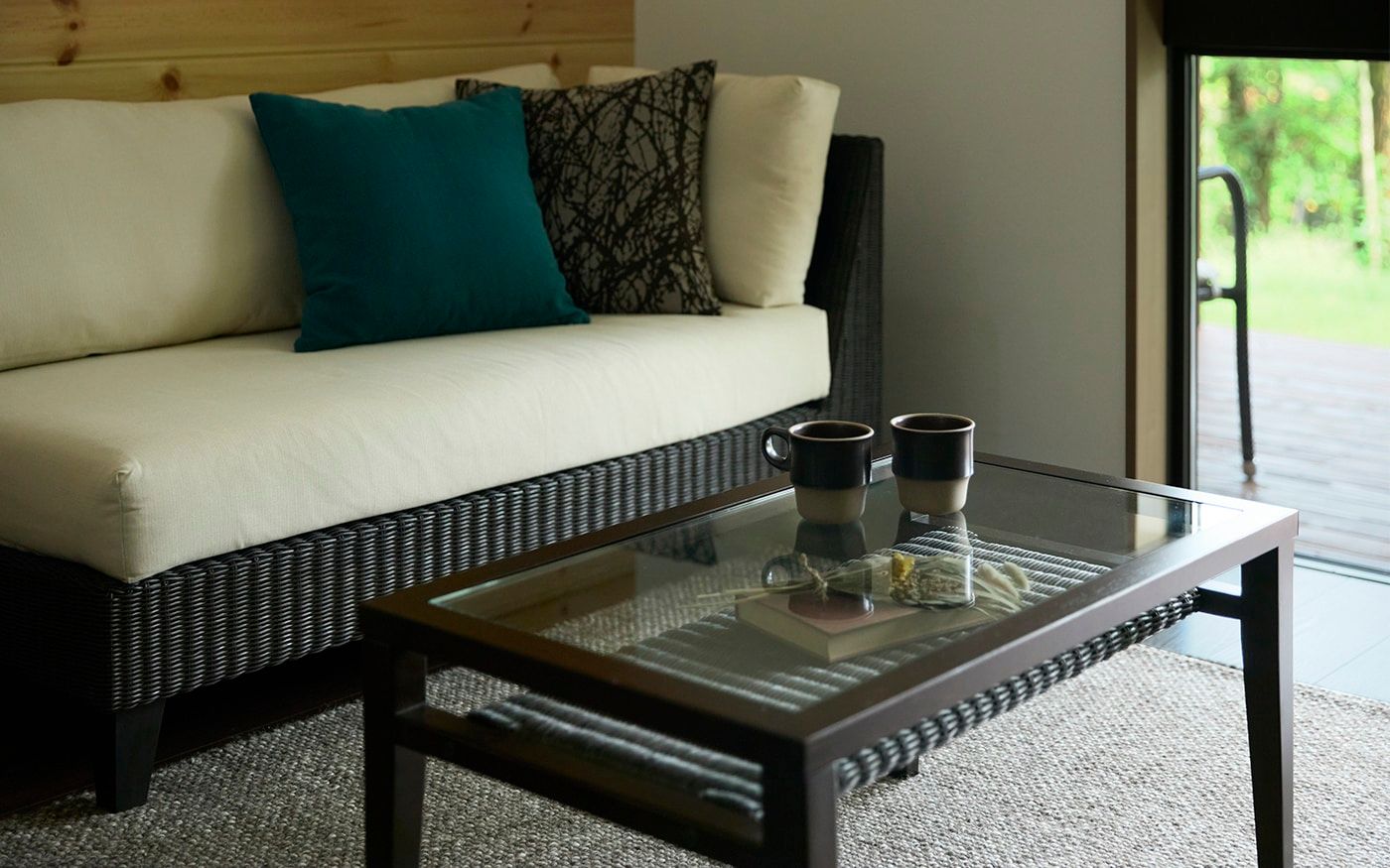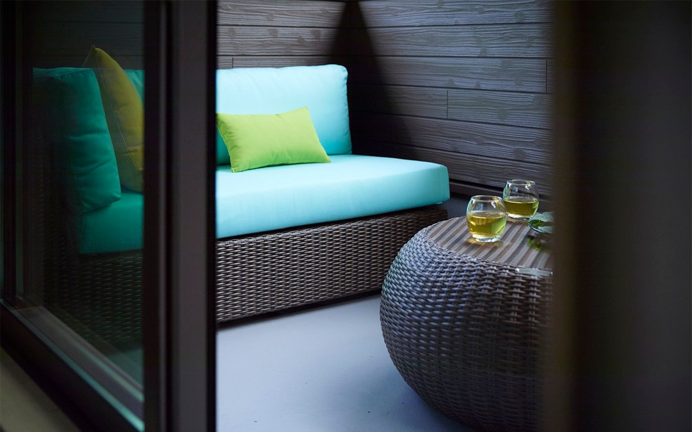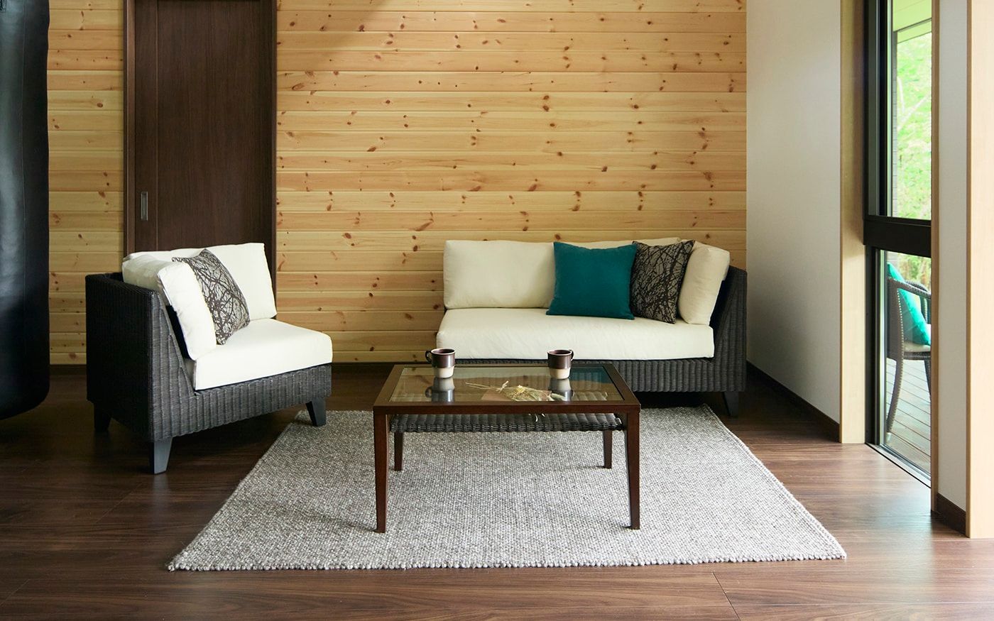軽井沢の豊かな緑に溶け込むようなテラスを実現。洗練された編み込みデザインの屋外家具で、室内と一体感を持たせたテラス空間を演出しました。こだわりの別荘がまるでオープンカフェのような寛ぎの場に様変わりしています。