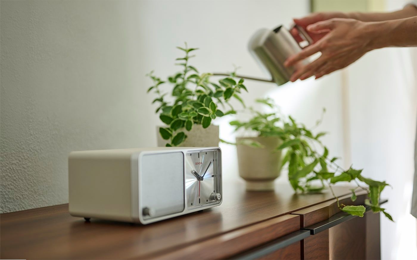 ナチュラルなグリーンのリビングには、無垢材の収納家具が欠かせません。優しい色合いの緑やヒヤシンスの家具と調和し、小さな植栽を添えることで、よりリラックスできる空間に。素材の温もりが、心地よいくつろぎの時間を約束してくれるでしょう。