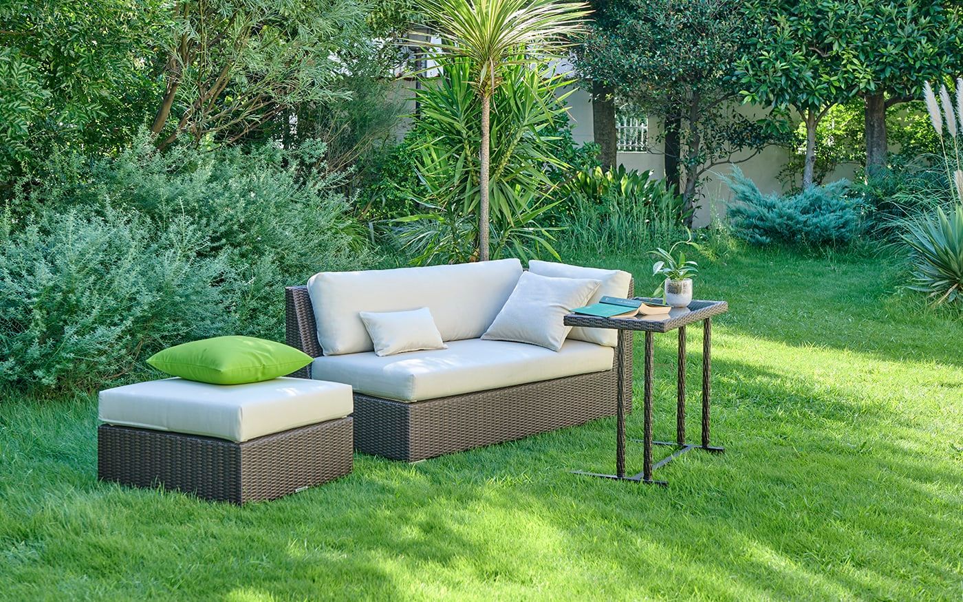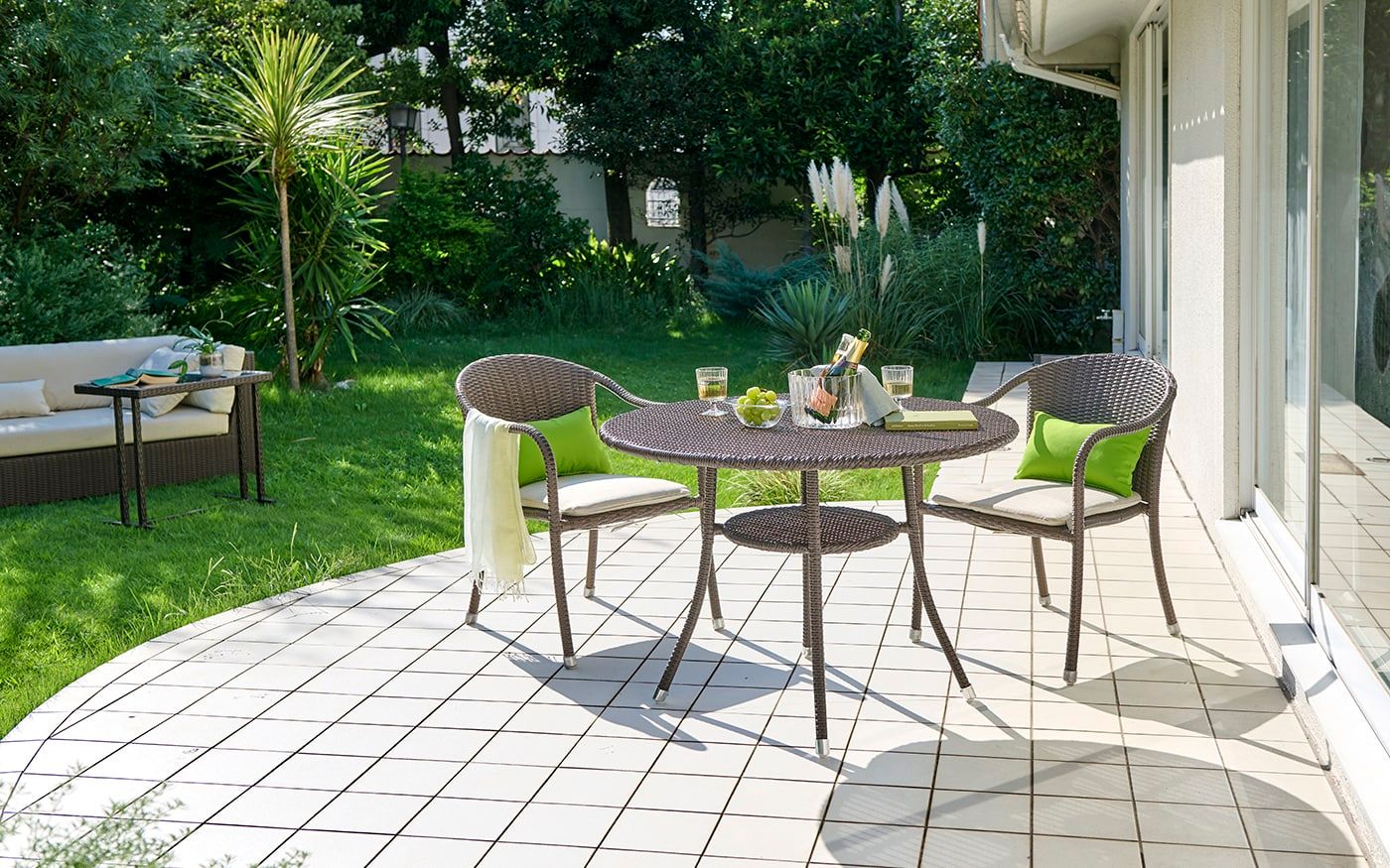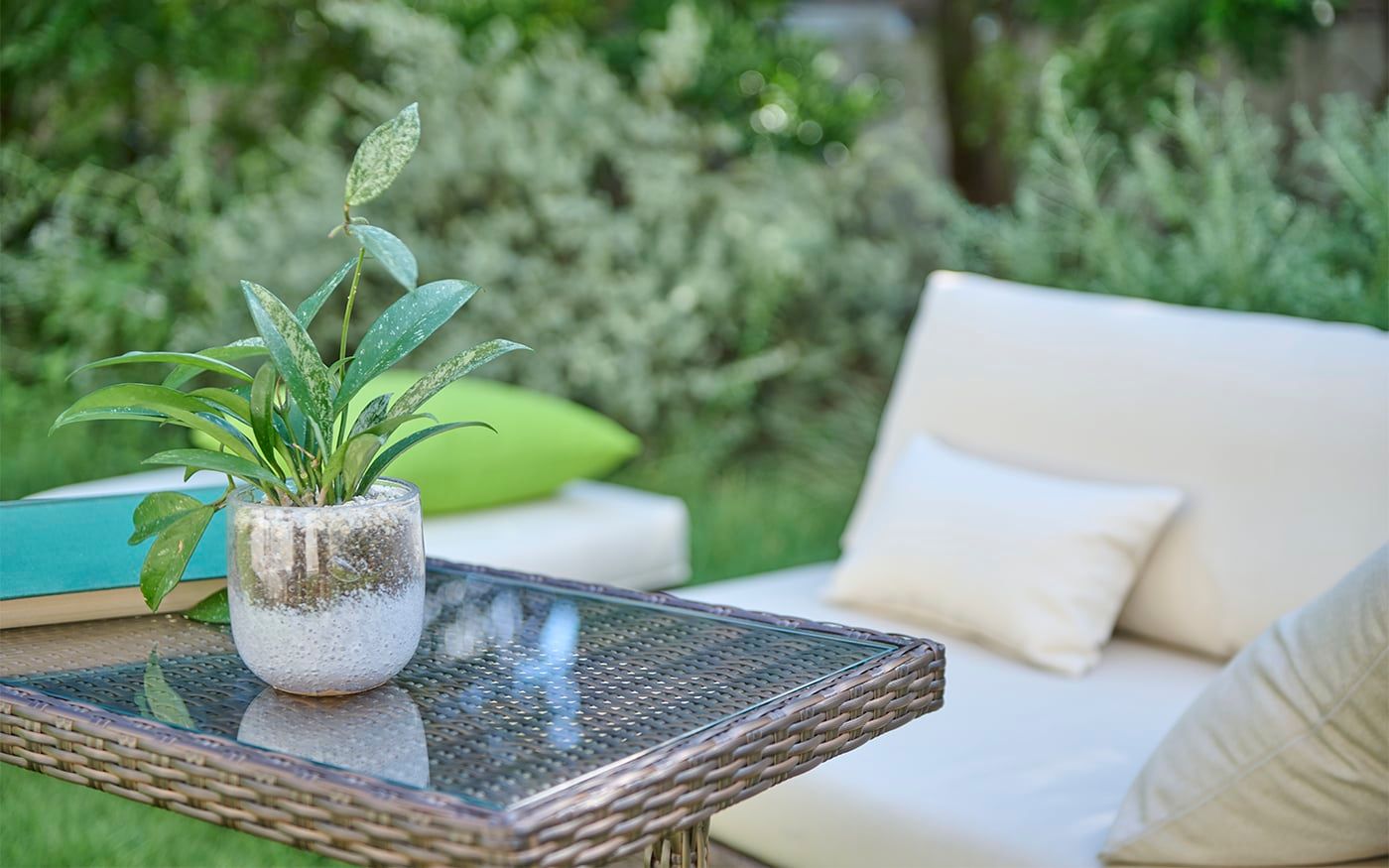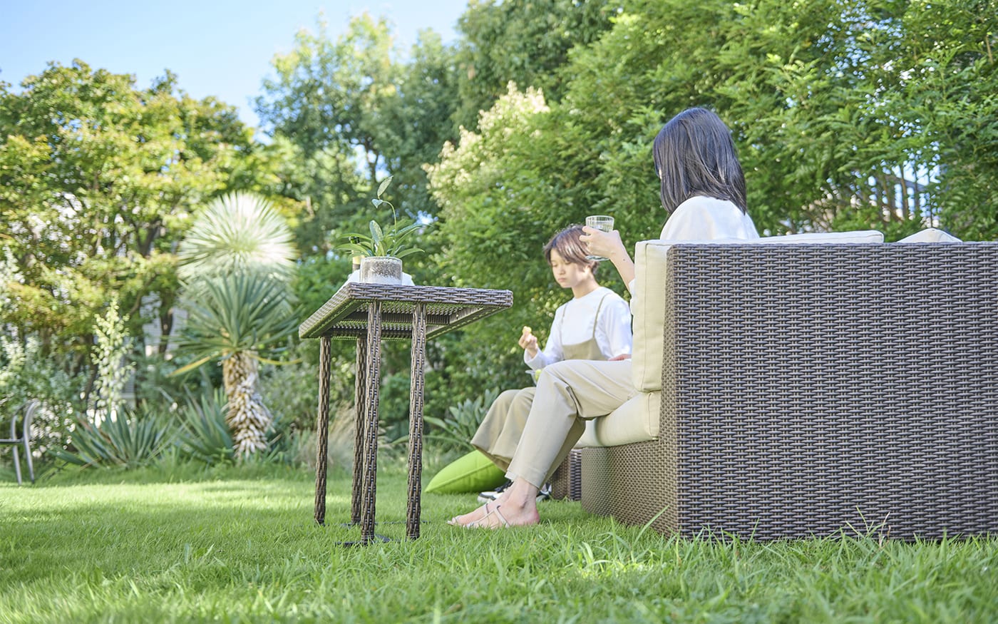 もし、テラスにゆとりのスペースがある時は、ガーデンソファやオットマンがおすすめです。木陰や木漏れ日が広がる空間に配置すれば、ご自宅でもリゾート気分でオフの時間を満喫できます。また、コンパクトなテーブルを取り入れたら、オープンカフェのようにリラックスして過ごせるでしょう。