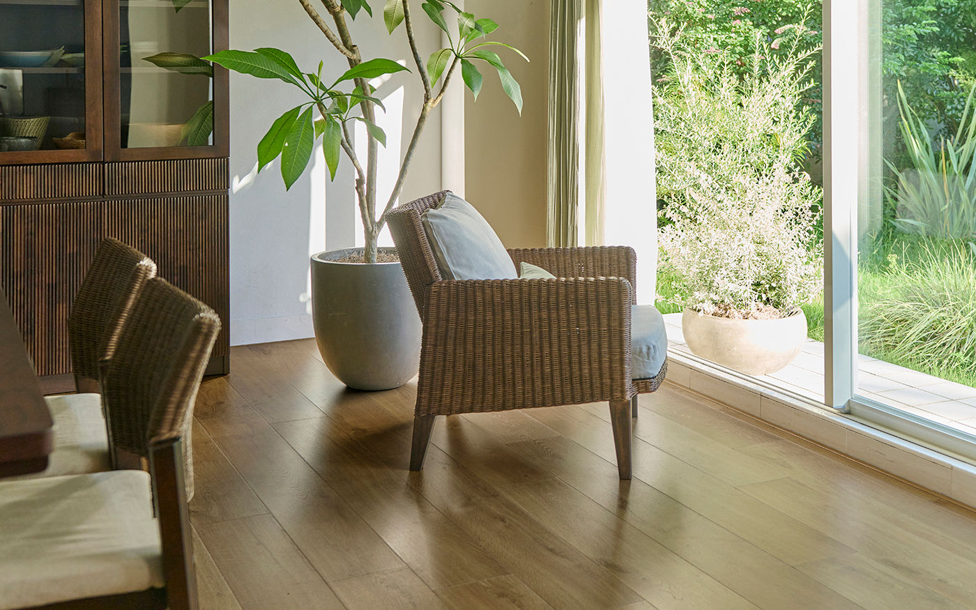 自然に溶け込むブラウンラタンのラウンジチェアで、ガーデンの緑に囲まれた至福のひとときを。室内には大きな観葉植物を添えて、自然の癒しを毎日の生活に取り入れました。このチェアが一つあれば、心地よいリラックス空間を演出できるはずです。
