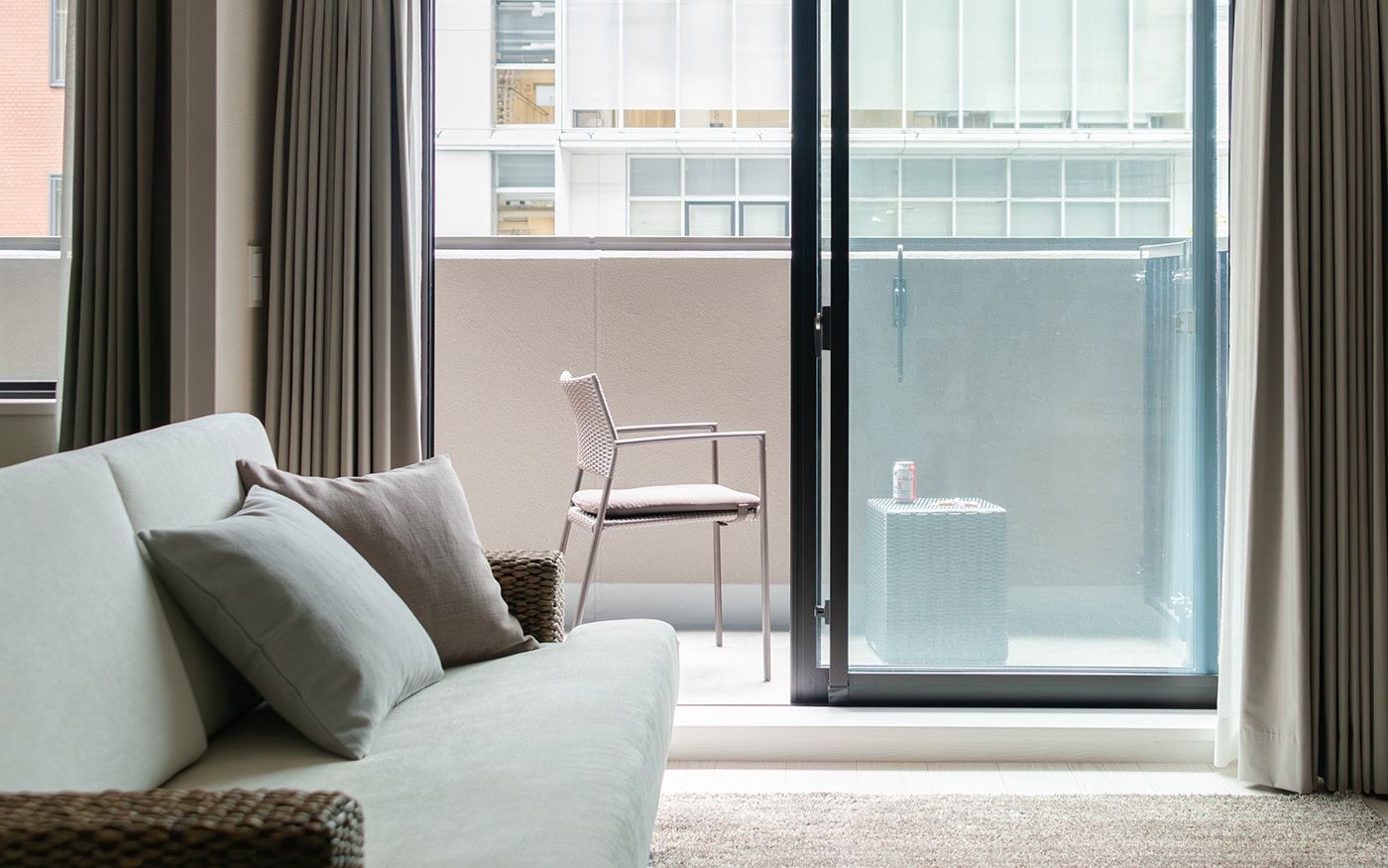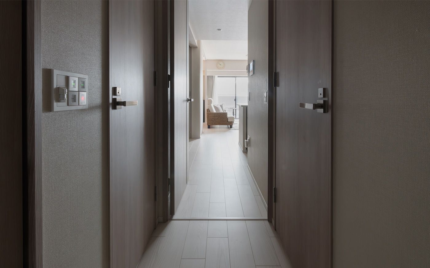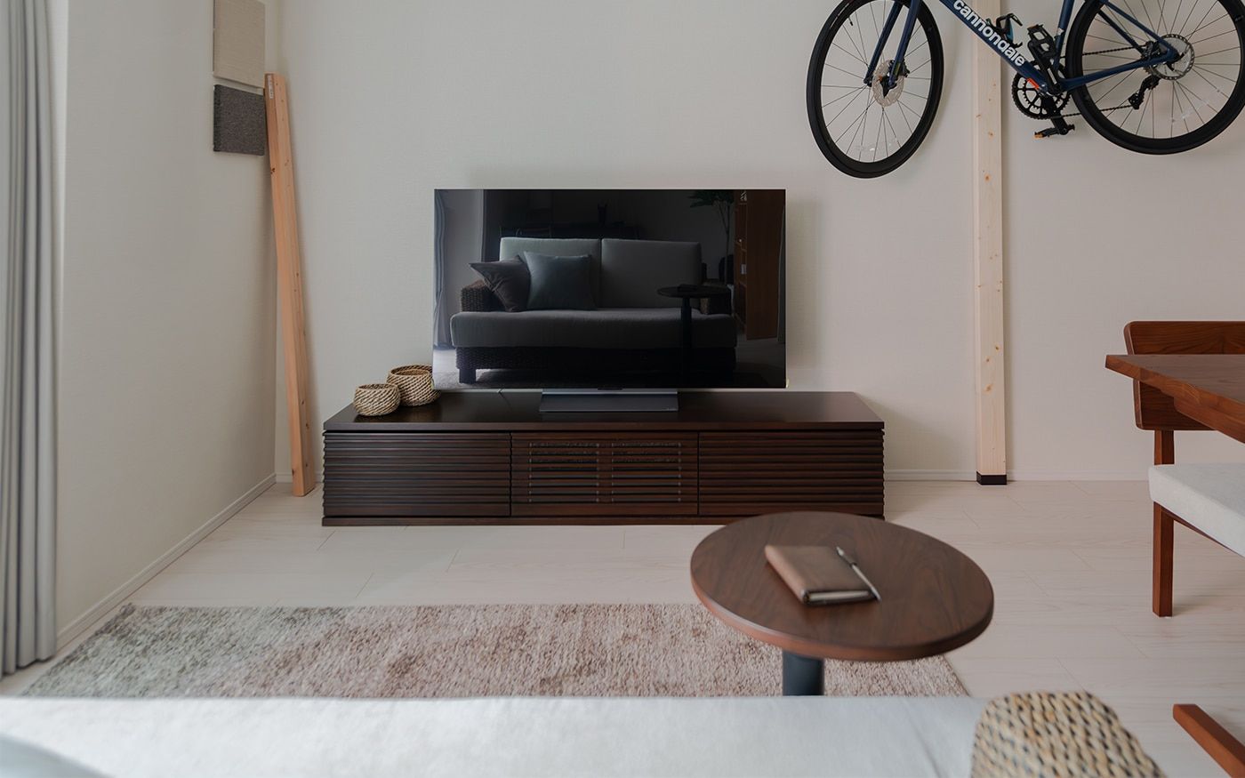 リゾートホテルを連想させる横ラインのルーバーデザインは、シンプルな中にも洗練さや素材の温もりを感じられます。お部屋の中心に配置し、周りにブラウン系統の家具や装飾を施すことで、統一感のあるホテルライクな空間を楽しめるでしょう。