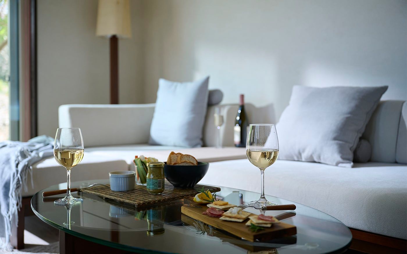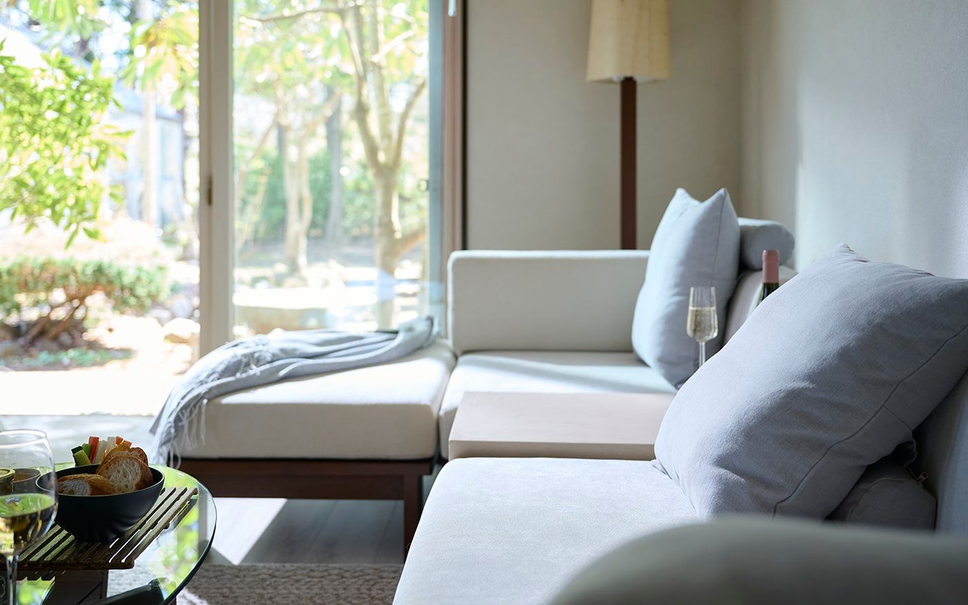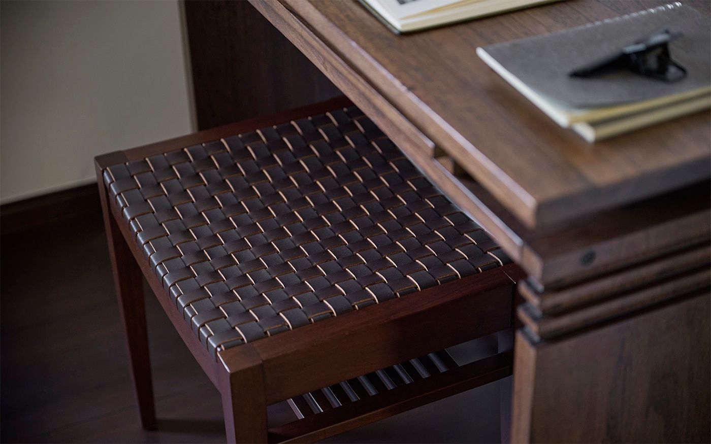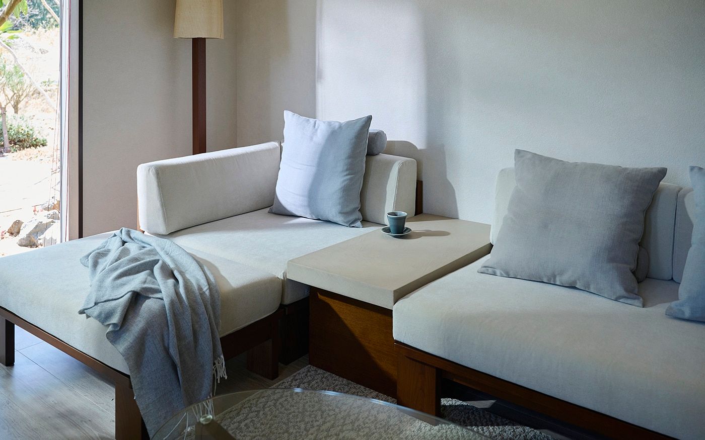 リゾートカフェのようなリラックススペースを演出する、おしゃれな円形カフェテーブルと無垢材チェアをセレクト。自然の温もりを感じる無垢材のチェアは、座るたびに心地よさを感じ、円形テーブルは会話を弾ませるデザインです。別荘ならではの贅沢なひとときを楽しめます。