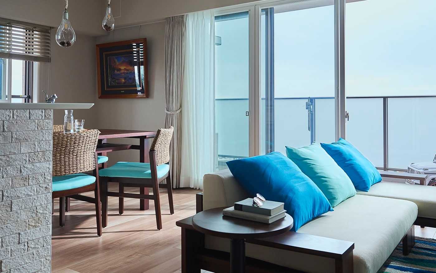 透明感のあるターコイズブルーやエメラルドグリーンが、心と身体に潤いを与えてくれます。非日常感のある色合いに包まれながら、ゆったりと過ごしてみては。