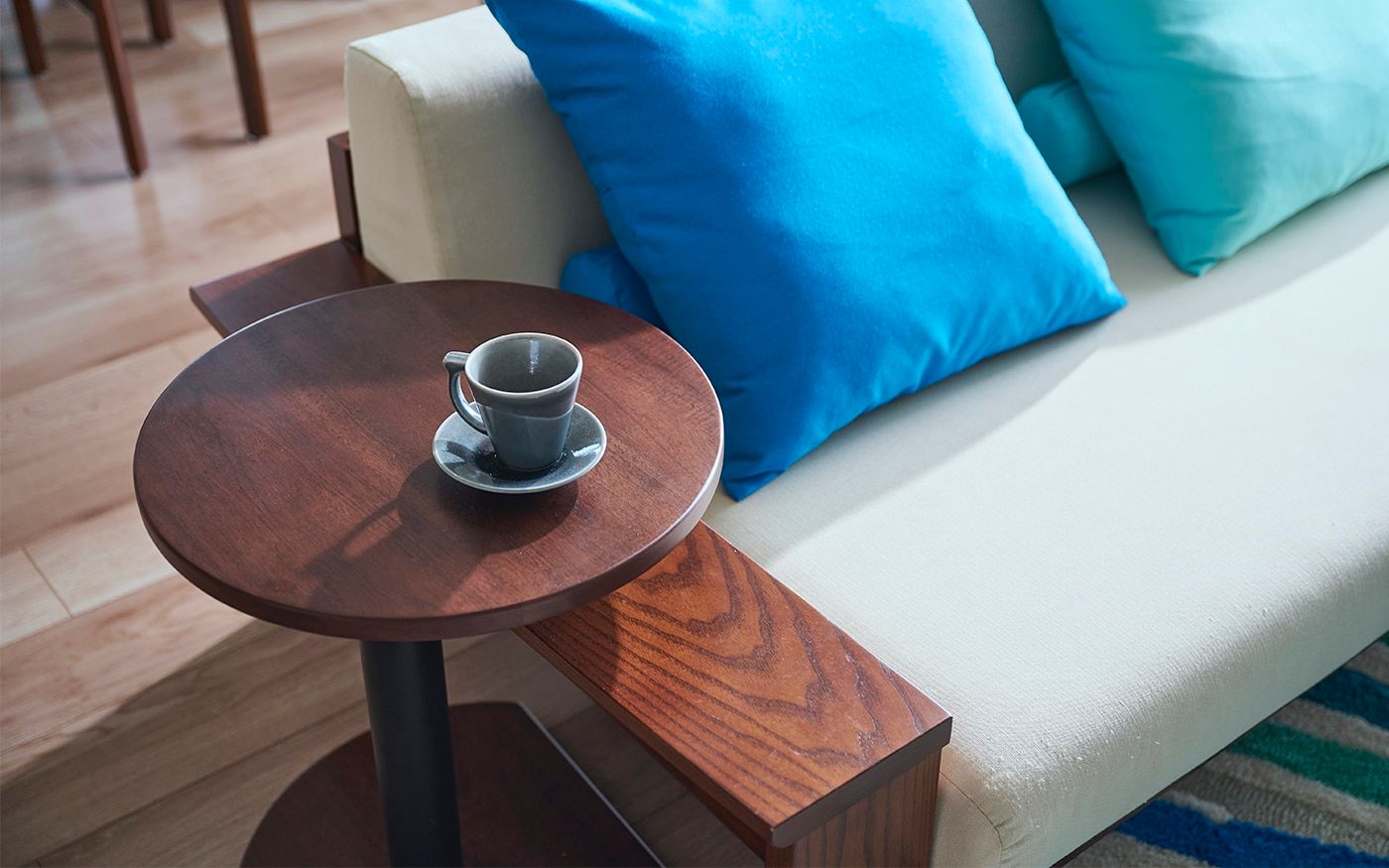 ロングセラーを続けるa.flatのソファ。素材選びからじっくりと時間をかけ、手作業で丁寧につくる職人のモノづくりへの想いが込められています。