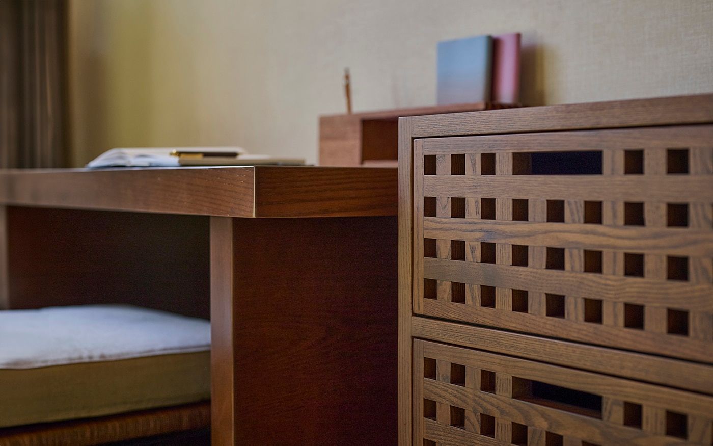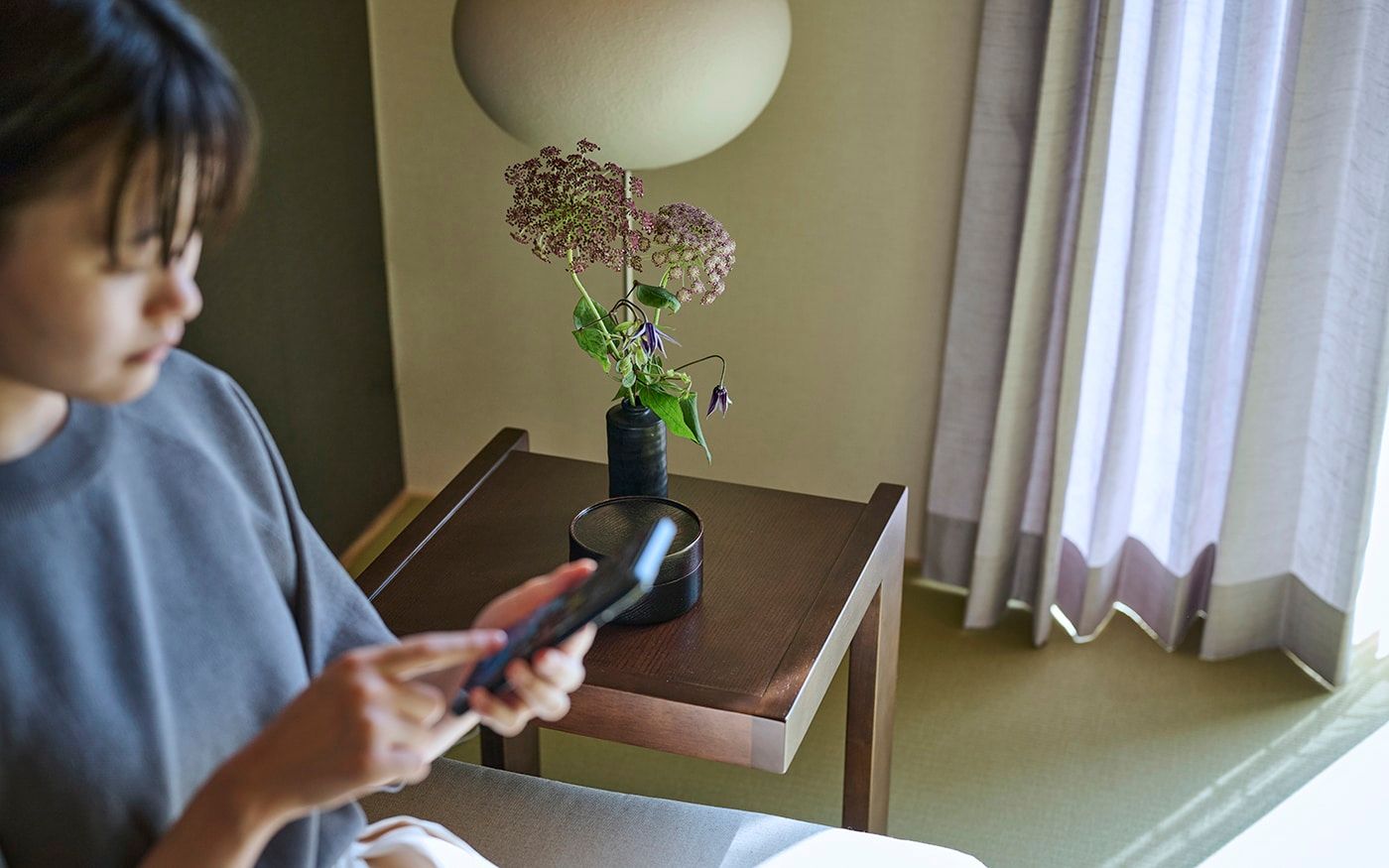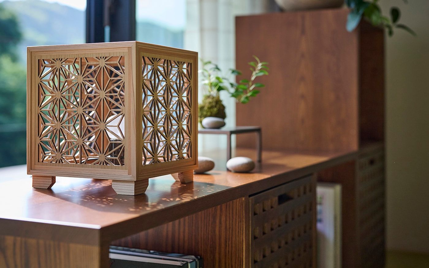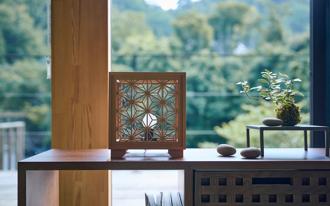 趣を感じる和モダンのリビングには、おしゃれな透かし彫りの組子照明が効果的です。柔らかな光が空間に陰影を生み出し、落ち着いた雰囲気を演出。さらに、小さな植栽を取り入れたり、壁掛け花器に季節の花を飾れば、和の美しさが一層引き立ちます。