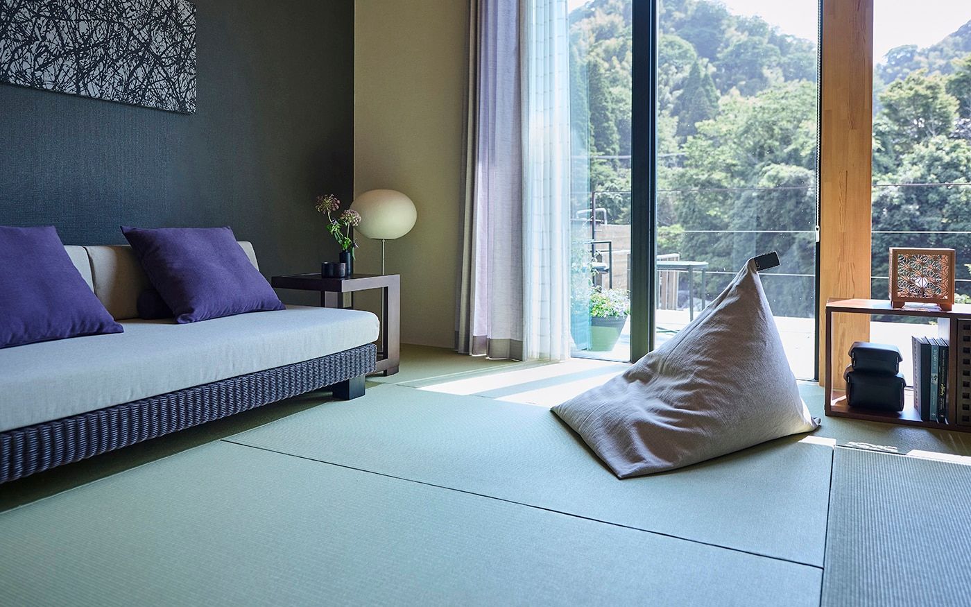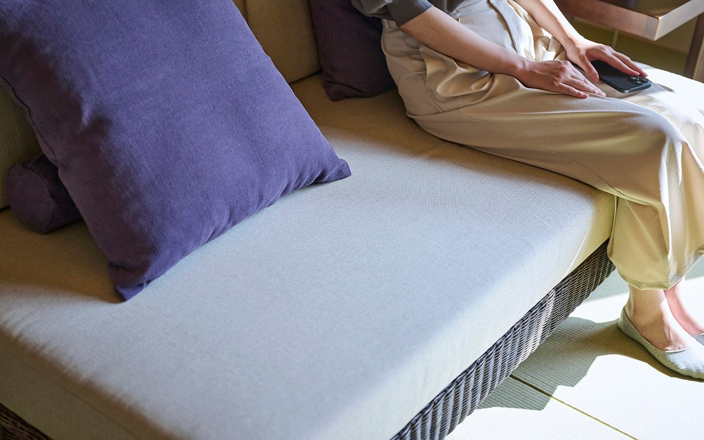 畳の空間にローソファとビーズクッションを組み合わせることで、和と洋の暮らしを絶妙にミックスできます。ソファに座るだけでなく、床に直接座ることもできるため、自由で開放感のあるリビングを実現可能に。心地よいくつろぎの時間を楽しみながら、和の風情を感じることができる空間です。