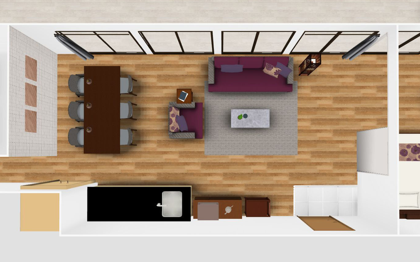 間取りによっては2つの部屋がシームレスに繋がることも。パープルのインテリアで統一感を作るには、お互いの空間で使っている色を取り入れることが大事です。例えば、ベッドスローやラウンジチェアのカバーに紫を用いれば、リビングとの調和が生まれます。全体的に紫色が増えすぎないようバランスを考えましょう。