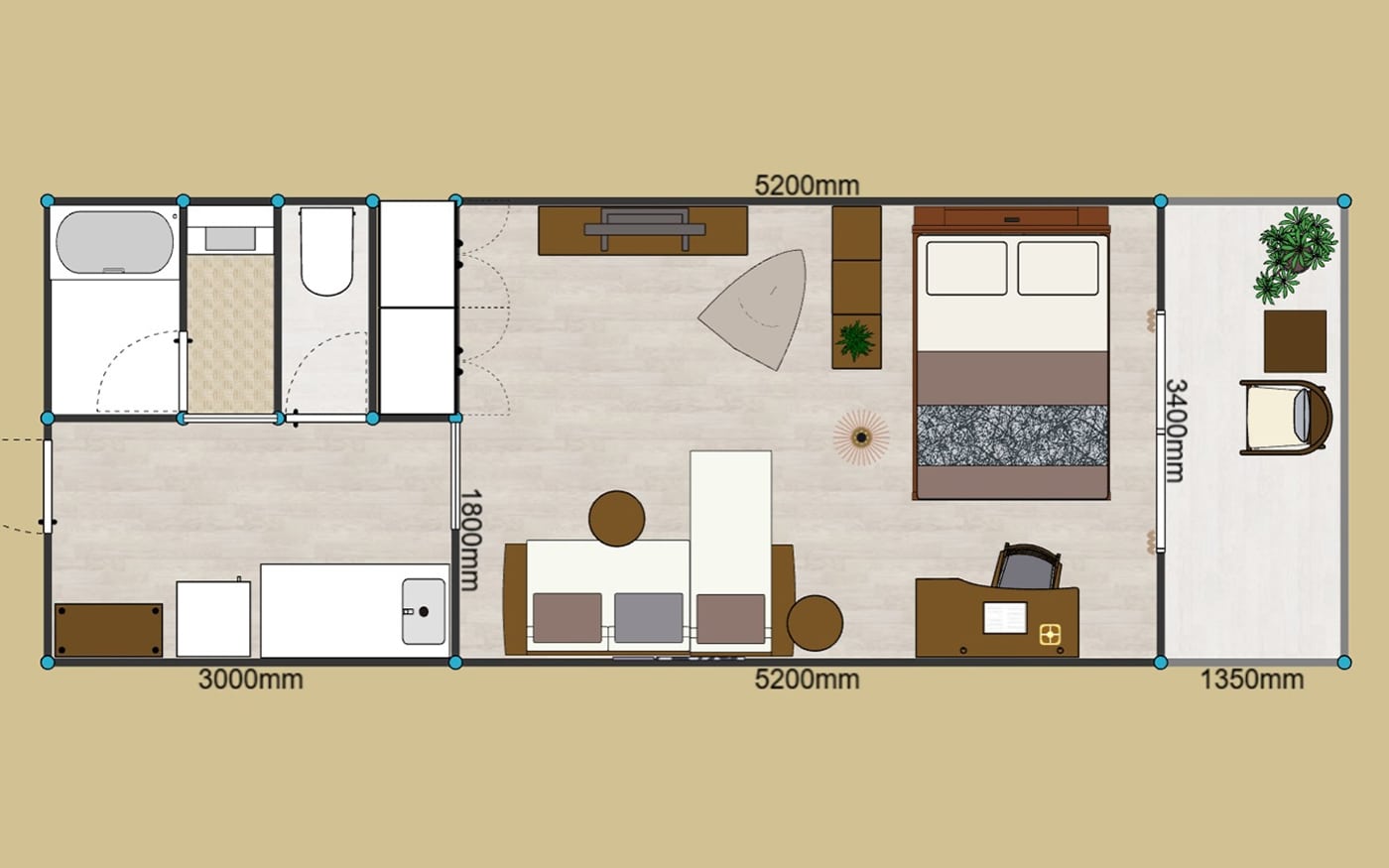 広い12畳のワンルームを収納家具で仕切り、リビングと寝室の空間を明確に分けるゾーニング術。壁を作らずにメリハリを生むことで、開放感を保ちながら生活シーンに合わせた快適な暮らしを叶えます。