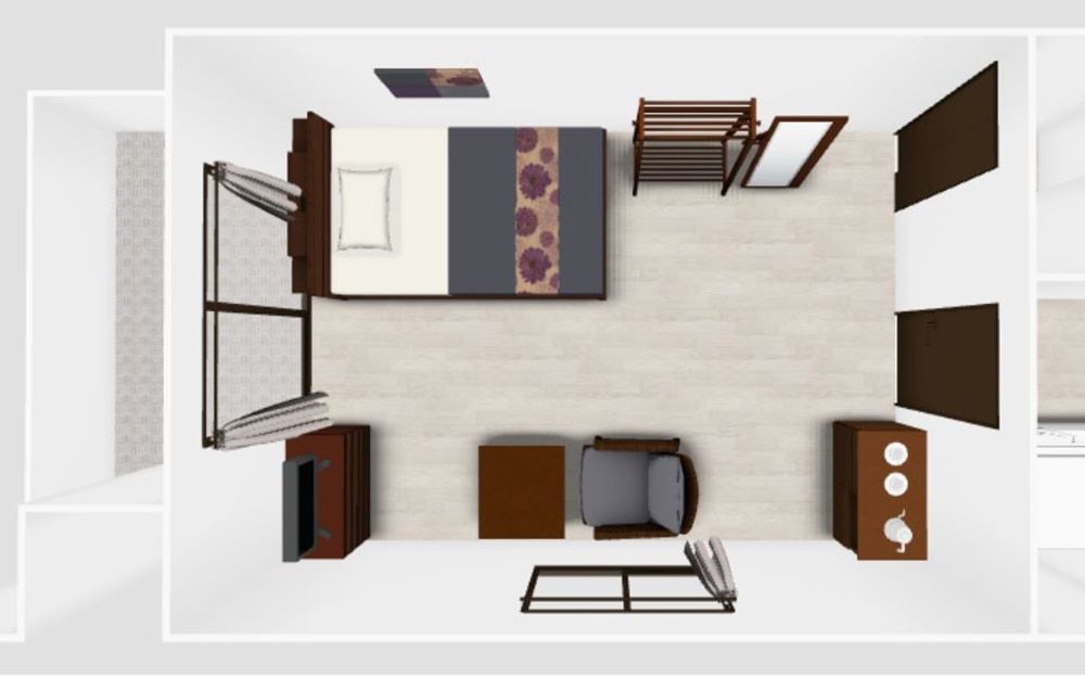 ご自宅の図面や間取り図を基に2Dイメージを作成します。2Dイメージでは、8畳の部屋に対して、家具のサイズ感や距離感などを確認して、快適な生活動線が確保されているのかをチェックしましょう。簡単にレイアウトを変更できるため、生活動線のチェックがしやすいツールです。