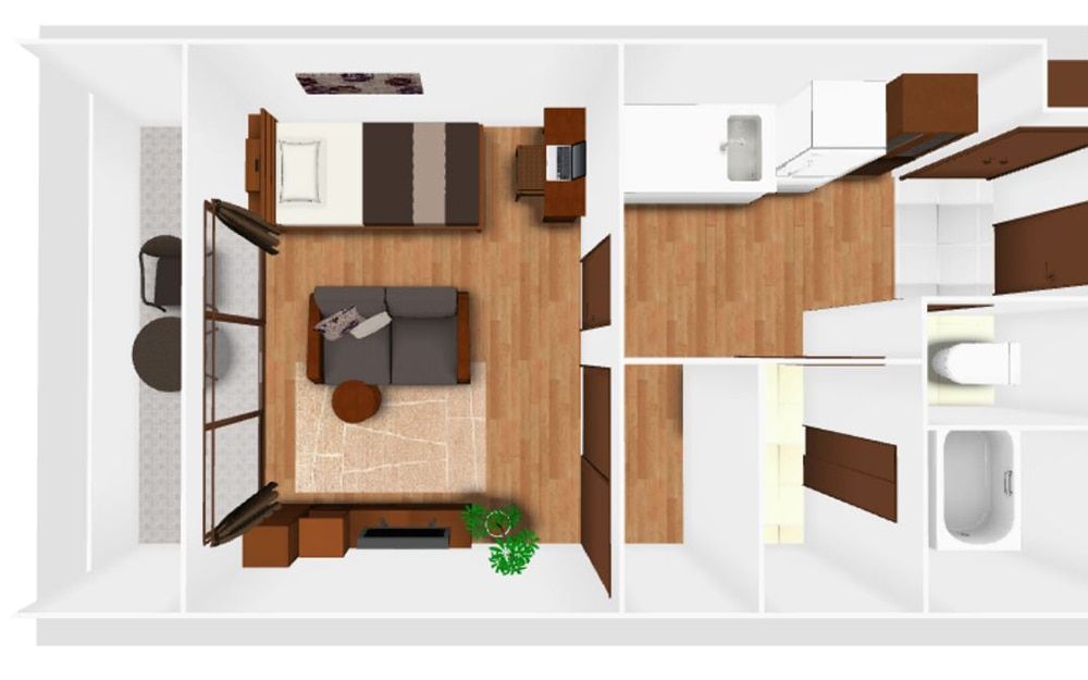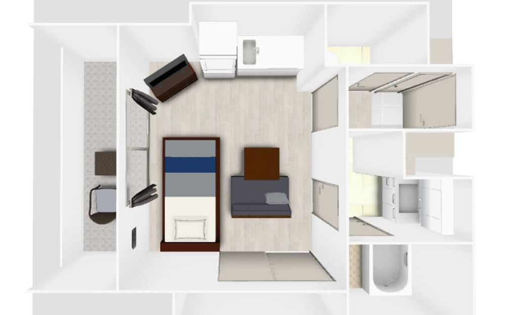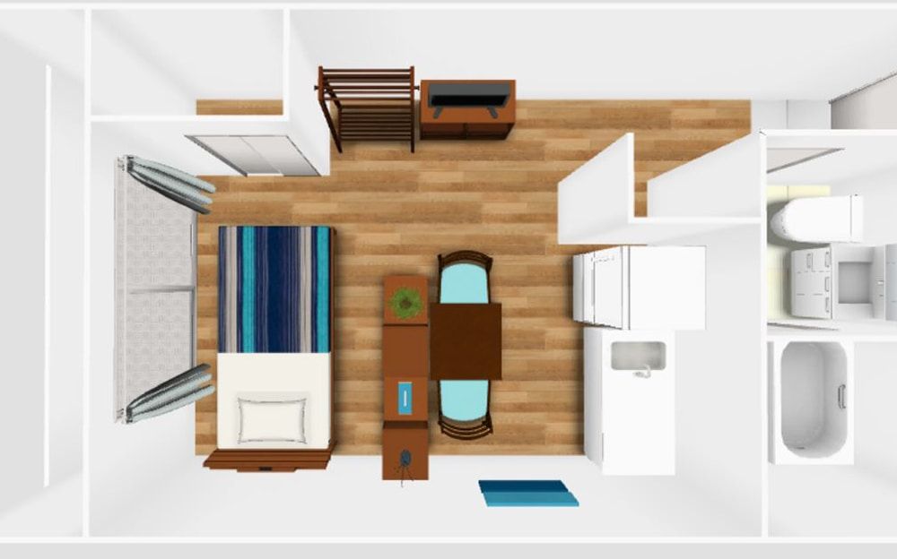 8畳の1Kやワンルームのレイアウトをご検討の際は、3Dイメージでインテリアをチェックすることができる3D家具配置シミュレーションがおすすめです。家具のサイズ感やインテリアのイメージなどを簡単に確認することができるため、8畳の1K・ワンルームに家具をご検討の際は、是非使ってみましょう。