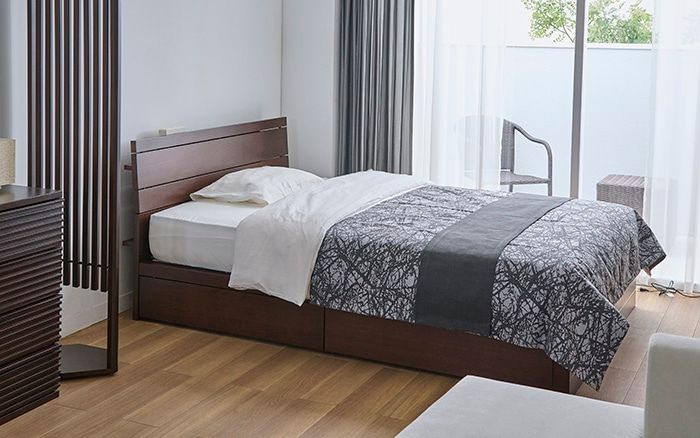収納付きベッドは周囲のレイアウトも余裕をもって