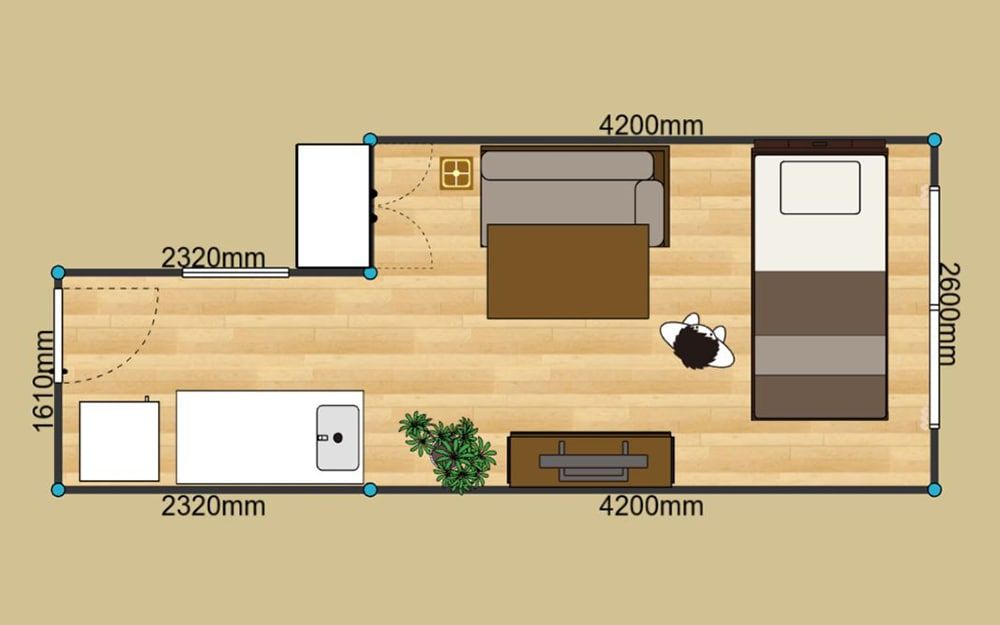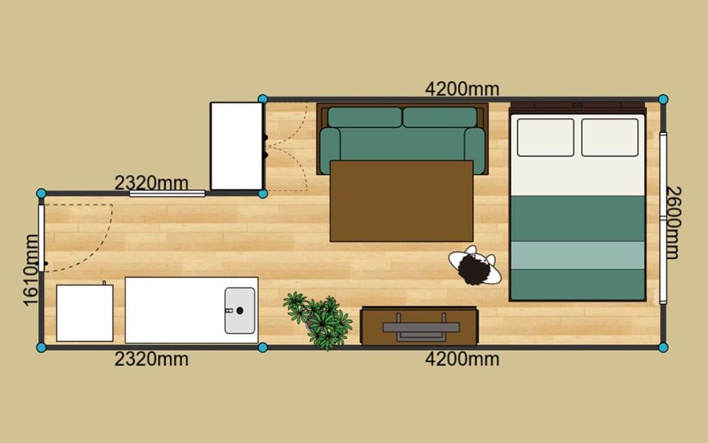 セミダブルベッドと2人掛けソファを置くことができます。