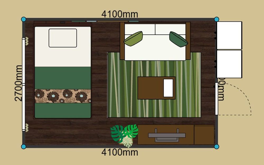 ベッドにはシングルサイズ、ダブルサイズなど、決まったサイズ感があり、狭い部屋を寝室のみで使用するのか、他の家具もレイアウトするのかでも、ベッドのサイズ感が変わります。3Dイメージを使い、部屋の大きさに対して、ベッドサイズの大きさのバランスを確認しましょう。