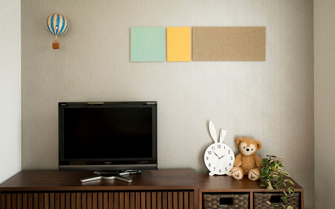 壁の一部分をアクセントカラーと揃えて統一感を作る
