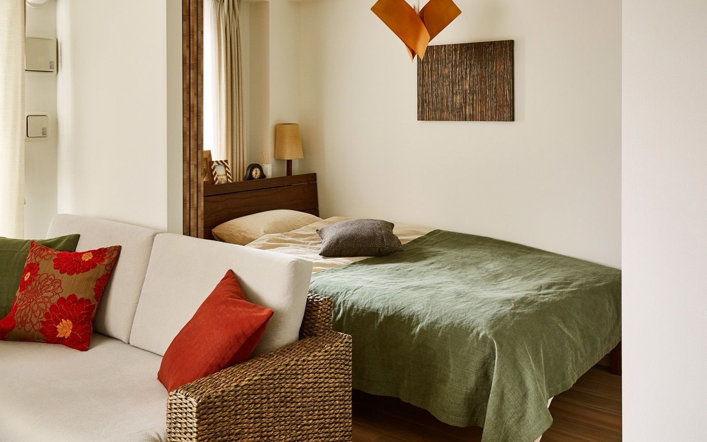 異なるトーンで自然のリラックス感を演出した寝室・インテリア実例
