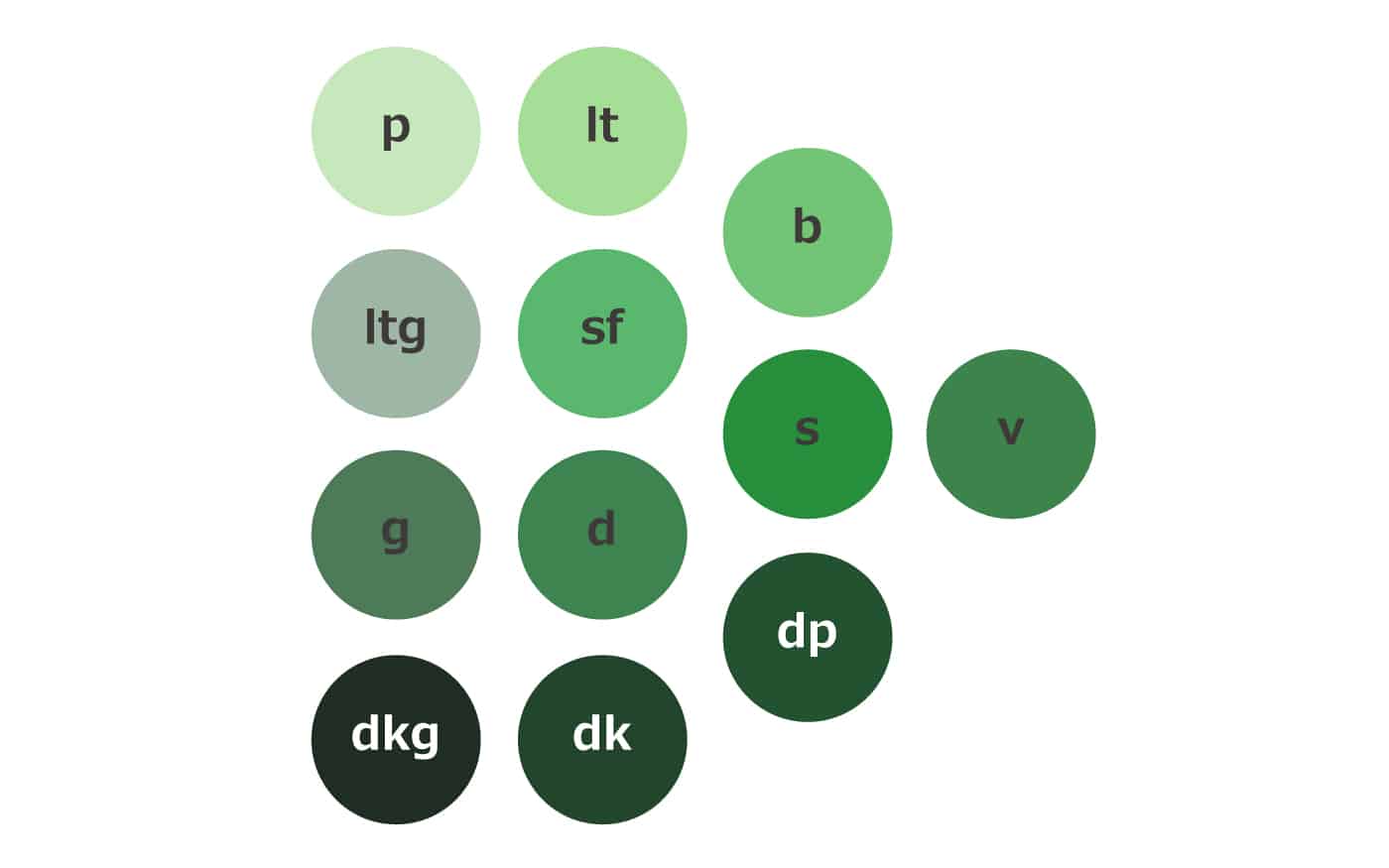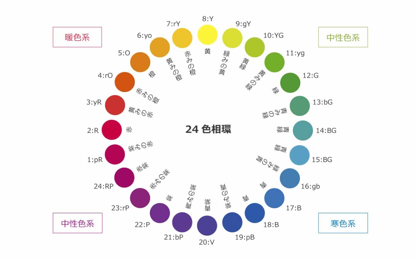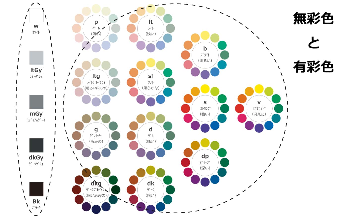 原色の明度・彩度を変えることで主に12のトーンとして色調が変わる点を覚えておきましょう。