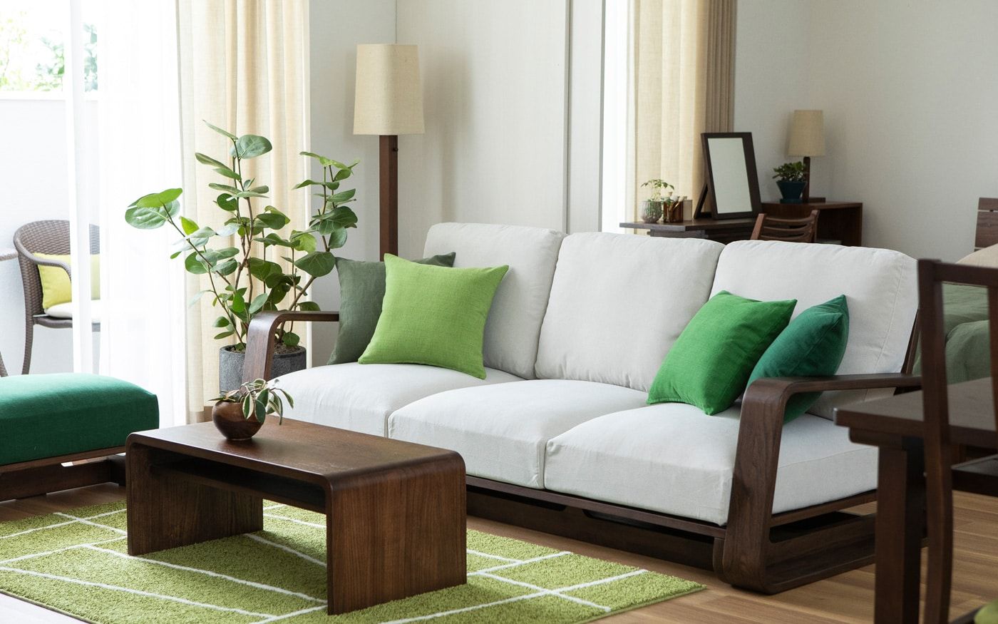 グリーンの濃淡とセパレーションを活用したリビング・インテリア実例