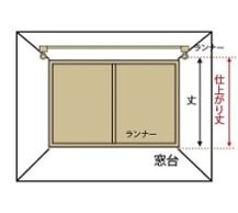 掃き出し窓の場合はレールランナーの穴から床まで、腰窓や出窓の場合はレールランナーの穴から窓枠までの高さを測ります。