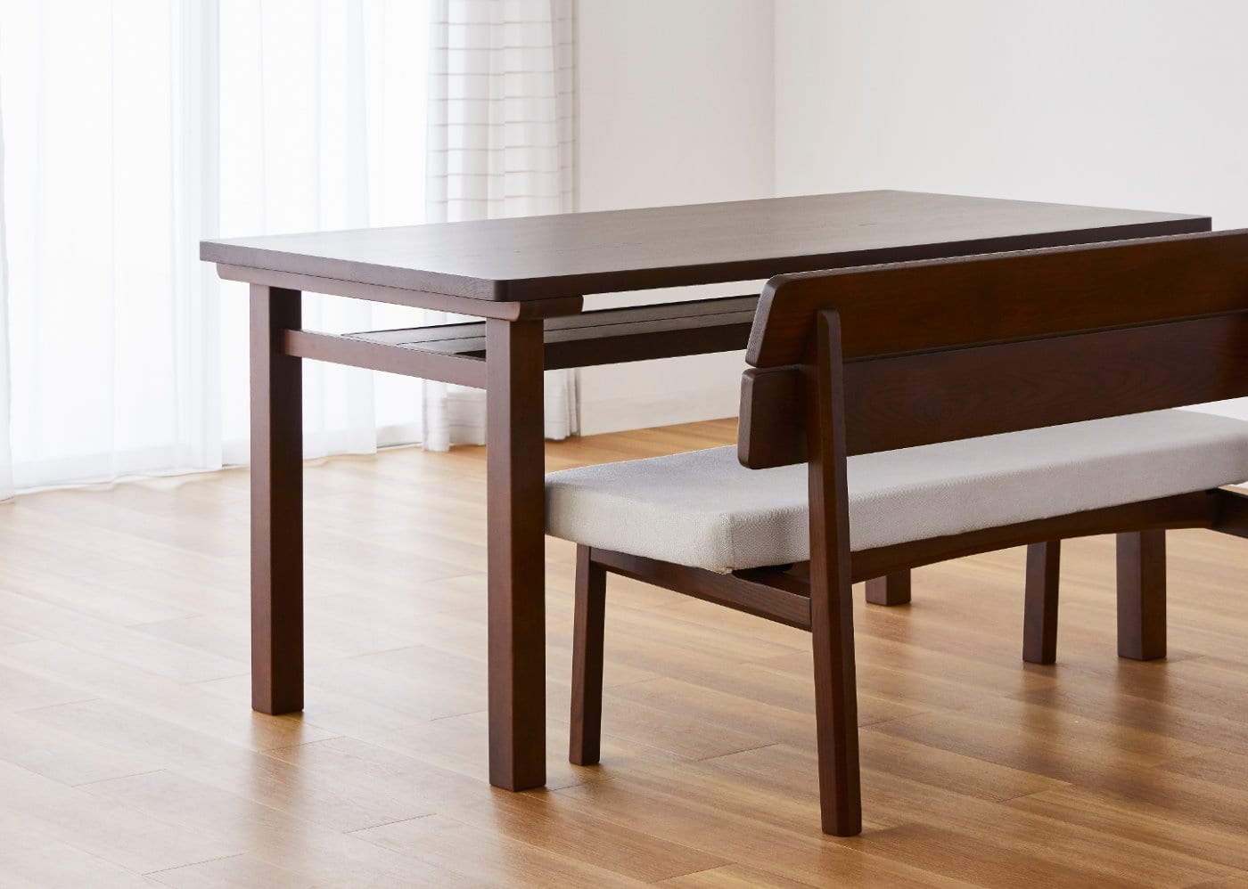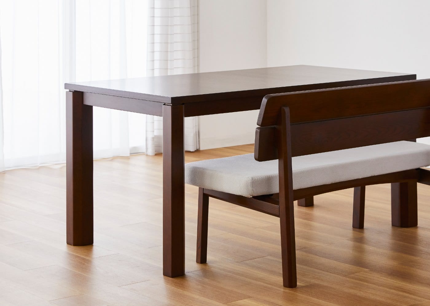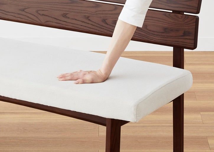 ウッド・ダイニングベンチの座面は、お尻をやさしく包み込む座面形状と適度な硬さのウレタン材を採用することで、安定感のある座り心地を実現しています。