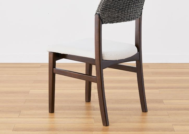 丸みを帯びた背もたれからつながる、美しいカーブを描いた細くてしなやかな後脚デザイン。椅子の背面から見た全体的な抜け感と相まって、リゾートの開放感を感じさせてくれます。ディテールにこだわった曲線と丸みを帯びた後脚デザインがカフウ・ダイニングチェアの特徴です。