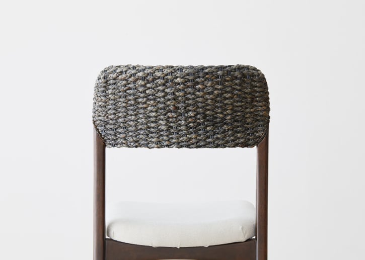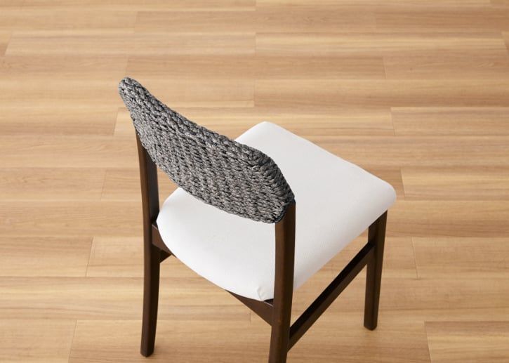 まるで、水上に浮かんでいるイメージを連想させてくれるカフウ・ダイニングチェアの座面。ラタン、ヒヤシンスと融合し、癒しのある座りごこちを提供してくれます。