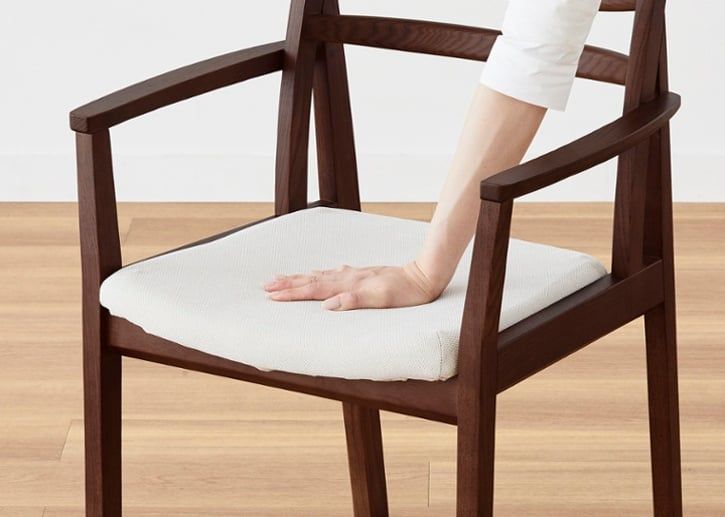 セイル・ダイニングチェアシリーズの座面は、お尻をやさしく包み込む座面形状と適度な硬さのウレタン材を採用することで、安定感のある座り心地を実現しています。