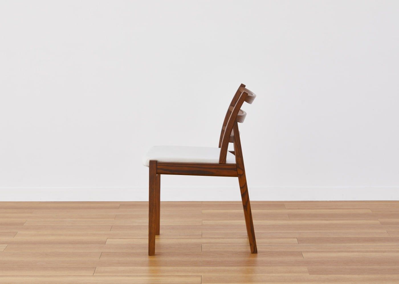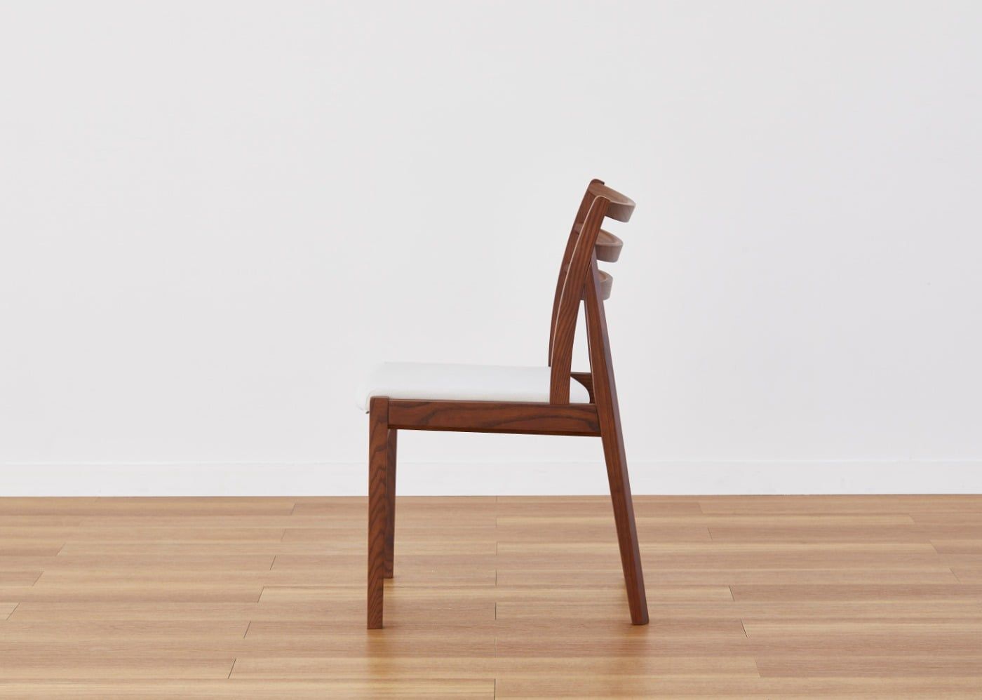a.flatの普遍的なデザインである、ルーバーの背もたれが印象的なウッド・ダイニングチェアv03。チェア本体の線の細さと抜けを感じるスタイリッシュな佇まいが見る人の心を魅了します。