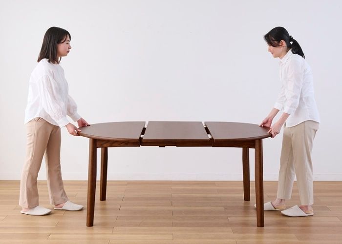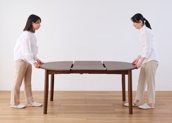 エン・伸長式ダイニングテーブルは、一人での開閉が難しいというデメリットがあります。そのため、頻繁に開閉する方にはあまり向いていないかもしれません。しかし、月に1~2回程度の開閉であれば、特にストレスを感じることなく快適に使用できます。また、多くのご家庭では来客時などに活用する以外の開閉の頻度は決して多くはないようです。
