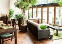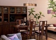 ダークブラウンの木製家具は高級なイメージと、上品な木の風合いにより温かみも演出します。シックで高級感のあるラタン素材のチェアとも相性が良く、全体として落ち着いた雰囲気を作り出します。ダークブラウンの色合いは、木々そのものの上品で落ち着いた印象を引き立て、空間に洗練されたアクセントを加えます。