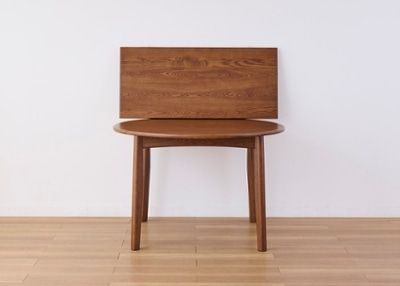 「エン・伸長式ダイニングテーブル」は、限られたスペースを有効活用しつつ、オール無垢材の自然な温かみと高級感を追求して開発されました。円形から、楕円形に伸ばすことで多くのゲストを迎え入れる機能性を実現しています。日常から特別な集まりまで、どんなシーンでもスタイリッシュに対応できる理想的なテーブルです。