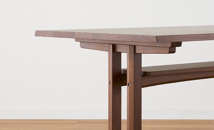 モク・ローダイニングテーブルは木の風合いや木目の美しさなど、塗装技術やカラーリングにこだわっております。また、汚れや水分に強く日々のメンテナンスが簡単に行える使い勝手の良さにもこだわった塗装を採用しているため、安心してダイニングテーブルとしてご利用頂けます。