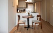 1LDKでキッチンカウンターがある場合は、ダイニングを置かずにカウンターチェアのみで空間を広く見れば、ホテルのような特別感を演出できます。