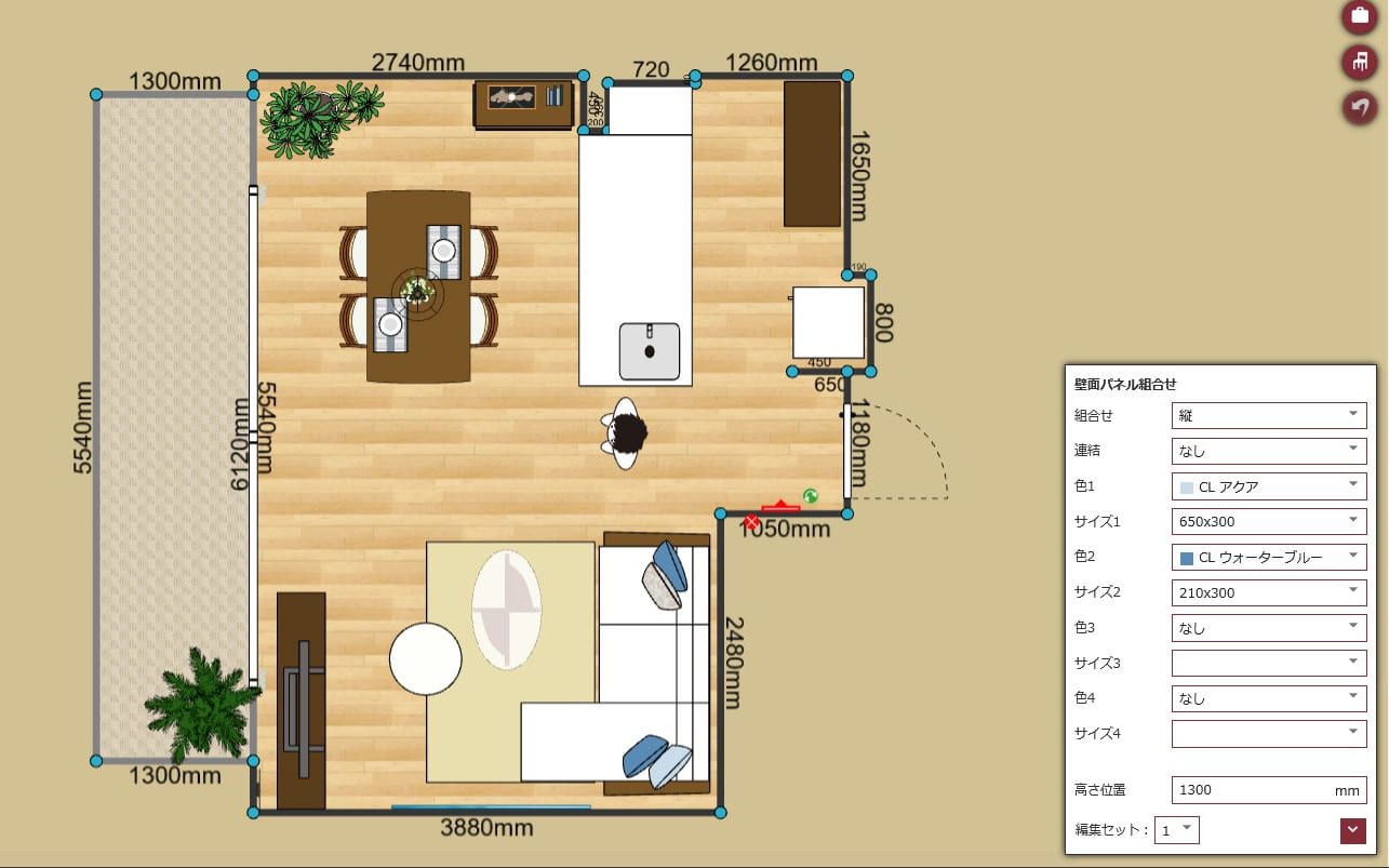 壁飾りの組み合わせを簡単に試せる