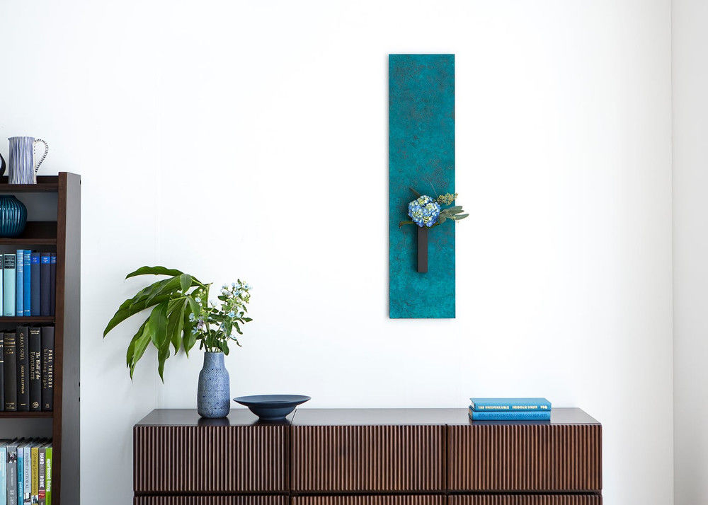 おしゃれなディスプレーとしての役割だけでなく、実用性がある点が魅力の壁花器・壁掛け時計。日本を代表する伝統工芸「高岡銅器」の壁花器・壁掛け時計は、独自の着色技術が織りなす、色鮮やかな発色と世界にひとつだけの斑模様を堪能することができます。