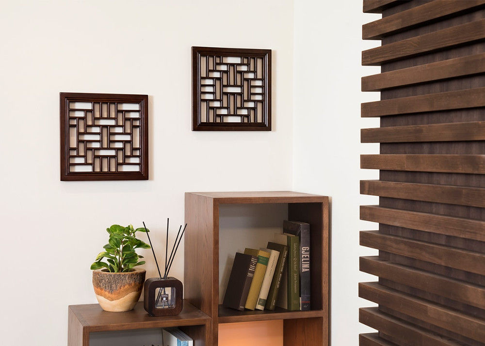 丁寧に無垢材を組み上げて作られた繊細かつ立体感のあるデザイン。素材の温もりを感じる格子はオリエンタルな雰囲気を感じさせます。壁面の広さに合わせて、4サイズからお選び頂けます。