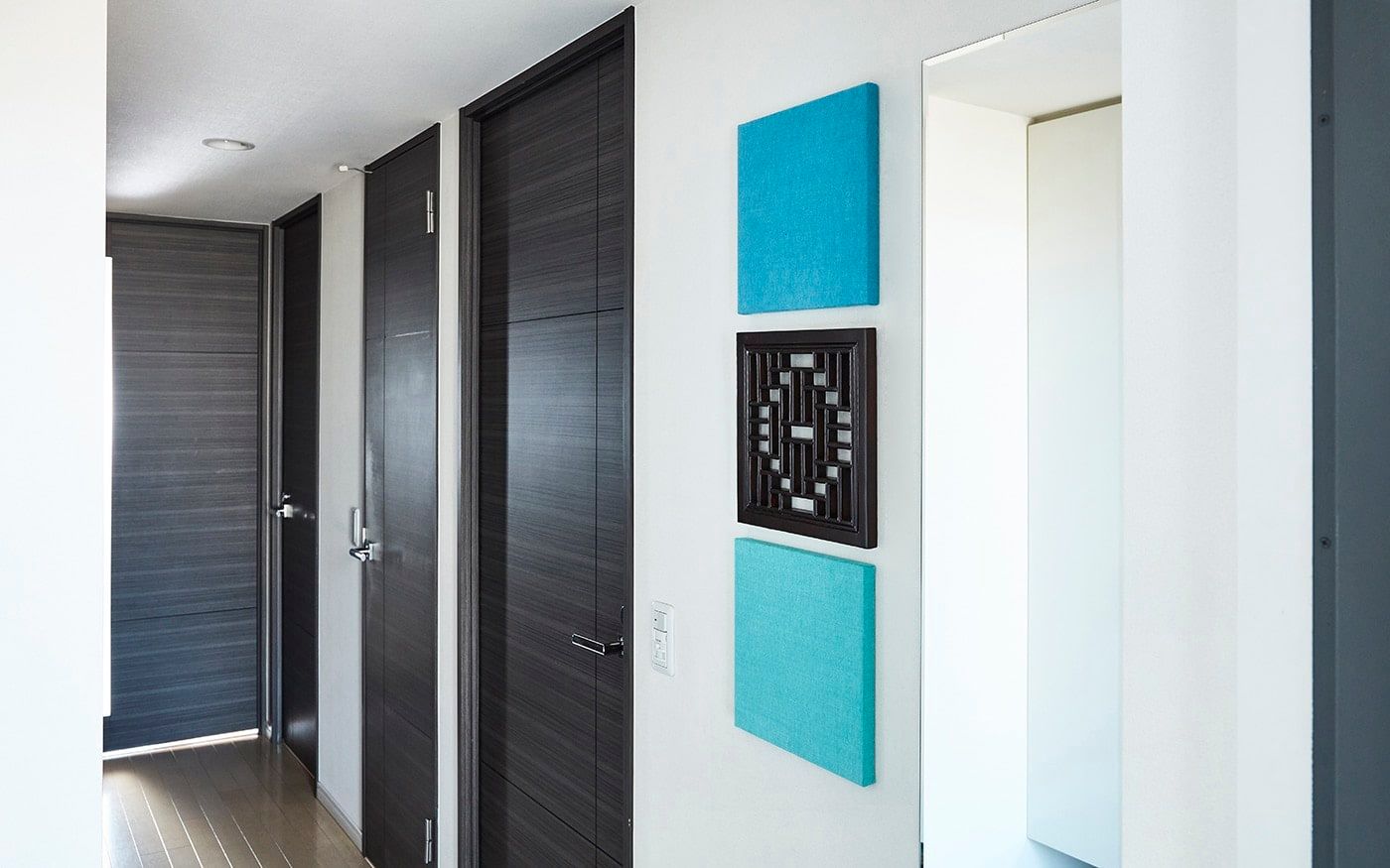 視線の先に「抜け」をつくることが重要と説明しましたが、あまりにも殺風景すぎると抜け感ではなくただ寂しい印象を与えてしまいます。そこで壁面に絵や写真、パネルなどを飾って空間全体のバランスを取りましょう。