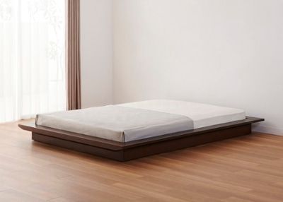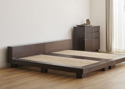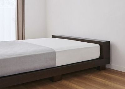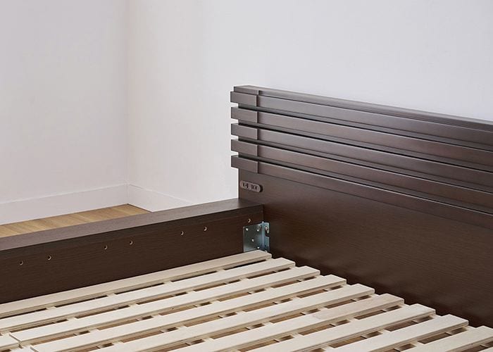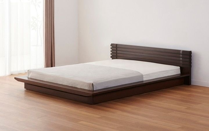 美しいルーバーデザインのヘッドボードと、マットレスを落とし込めるフレーム構造が魅力のローベッド。高級旅館に訪れたような贅沢な気分にさせてくれる、洗練されたデザイン性にこだわったローベッドです。