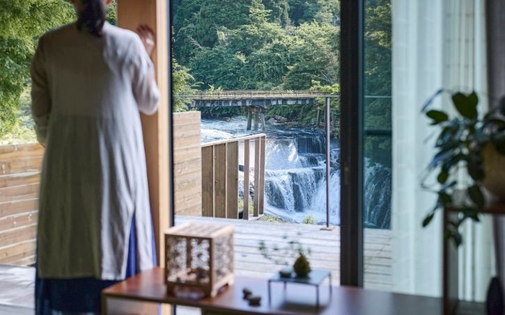 職人が無垢材を丁寧に組み上げることで、生み出される繊細な格子柄のパネルは、和の雰囲気とぴったり。また、同じサイズのウッドパネルを二つ並べたことで、より印象を強めた点もコーディネートのポイントです。