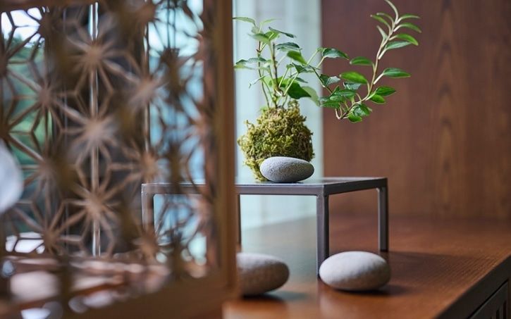 グリーンを取り入れることで、一般的に多い淡いグリーンの畳とも自然と調和し、リラックス感を演出できます。家具に濃いブラウンを入れることで、空間が引き締まりモダンな要素をプラスできます。