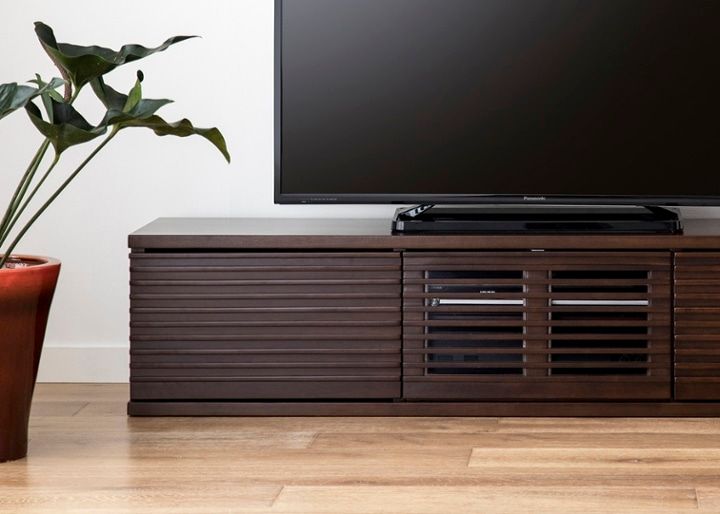 美しい水平ラインを描くルーバーデザインのキャビネットは、脚の有無を選ぶことができ、無しの場合は畳に跡を付けにくい収納棚として活躍してくれます。