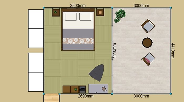 寝室の間取りの寸法を確認する